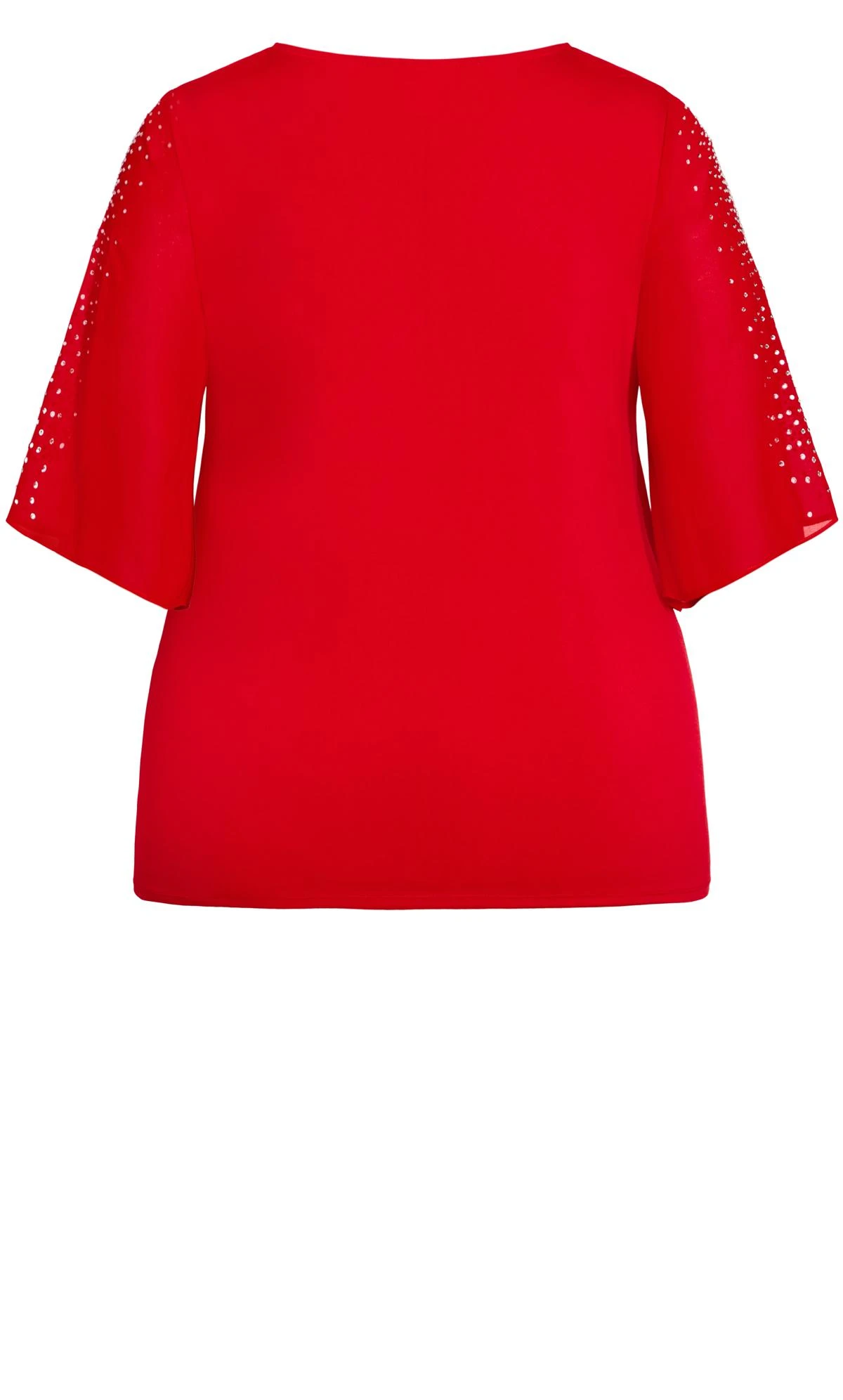 Illuminate your style with the Ave Studio Red Diamante Sleeve Wrap Top. This radiant red top features dazzling diamante embellishments along the sleeves, offering a hint of glam to its sophisticated wrap silhouette. Whether paired with sleek trousers or a skirt, it promises to be the centerpiece of any ensemble.