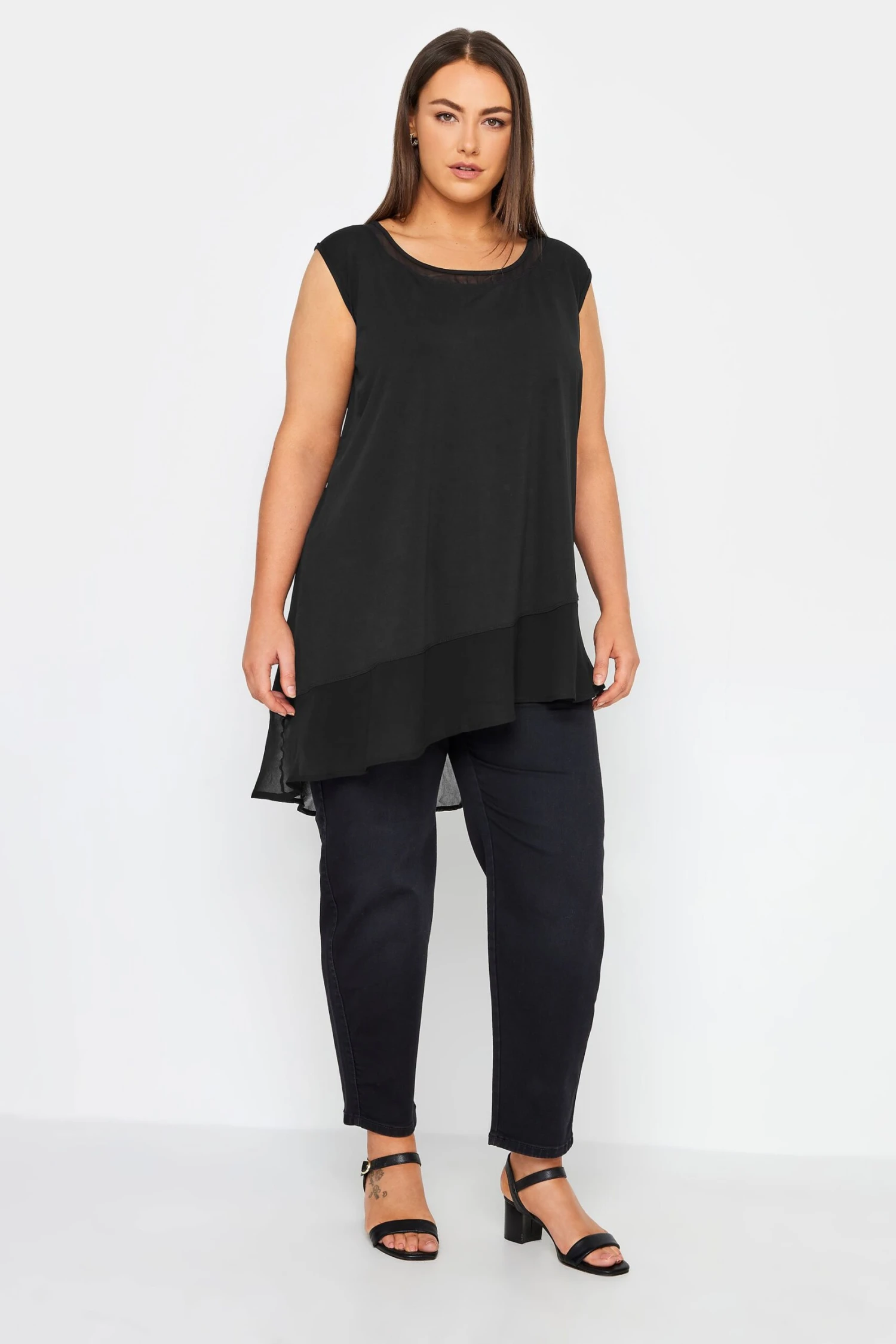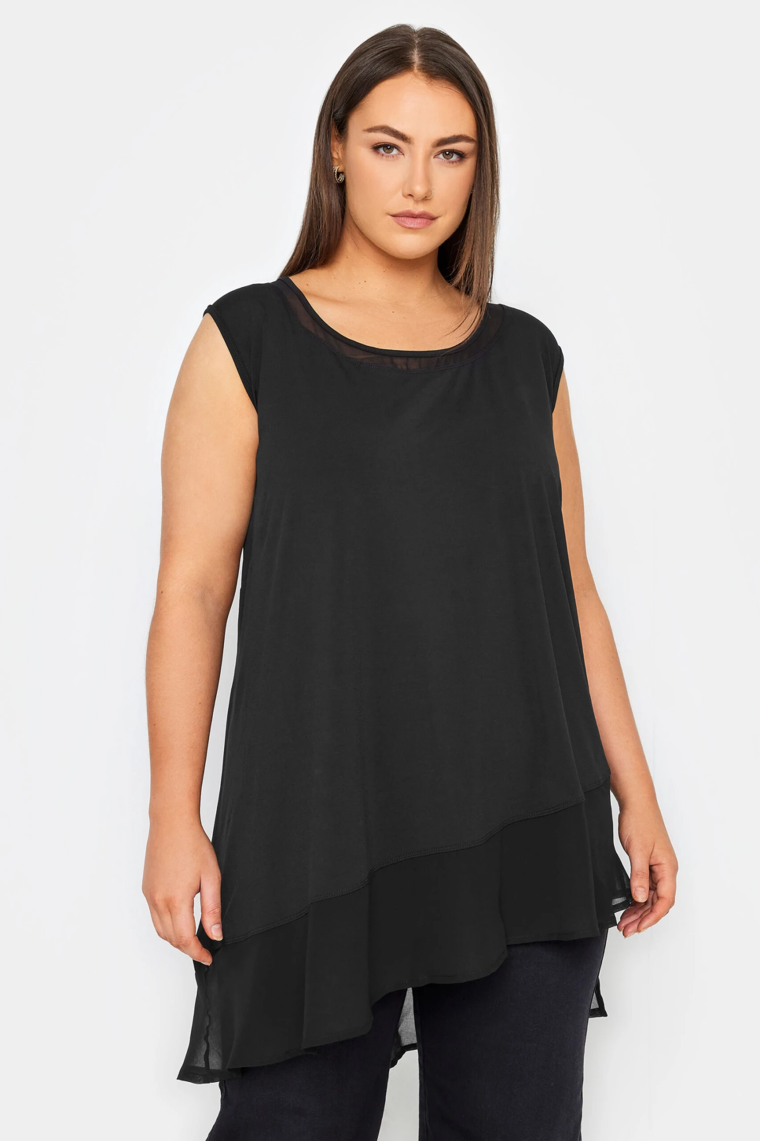 Elevate your fashion game with the Avenue Black Asymmetrical Frill Tunic. This striking tunic blends asymmetry with flirty frills, offering a unique and stylish addition to your wardrobe. Embrace a modern and confident look with this edgy yet chic piece.