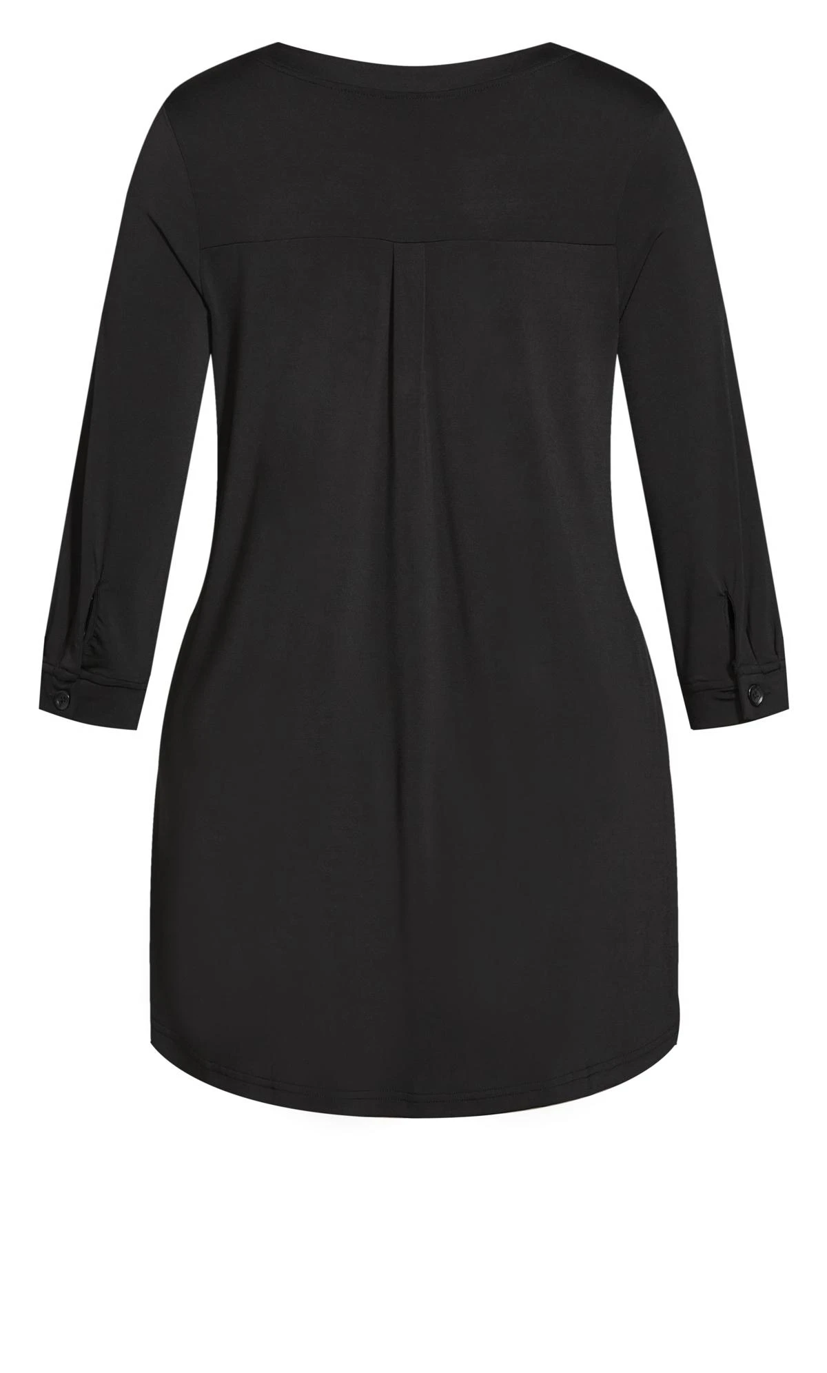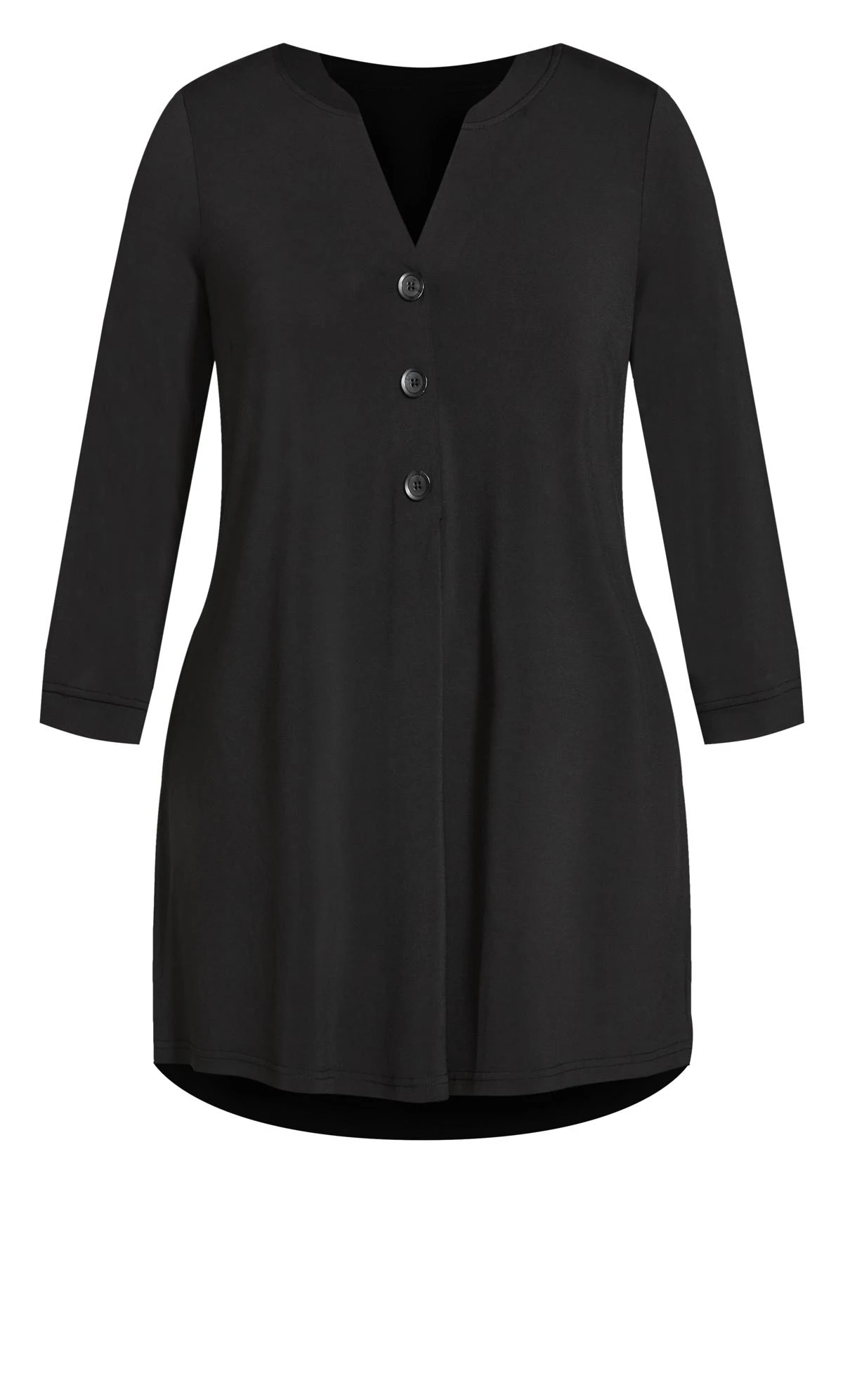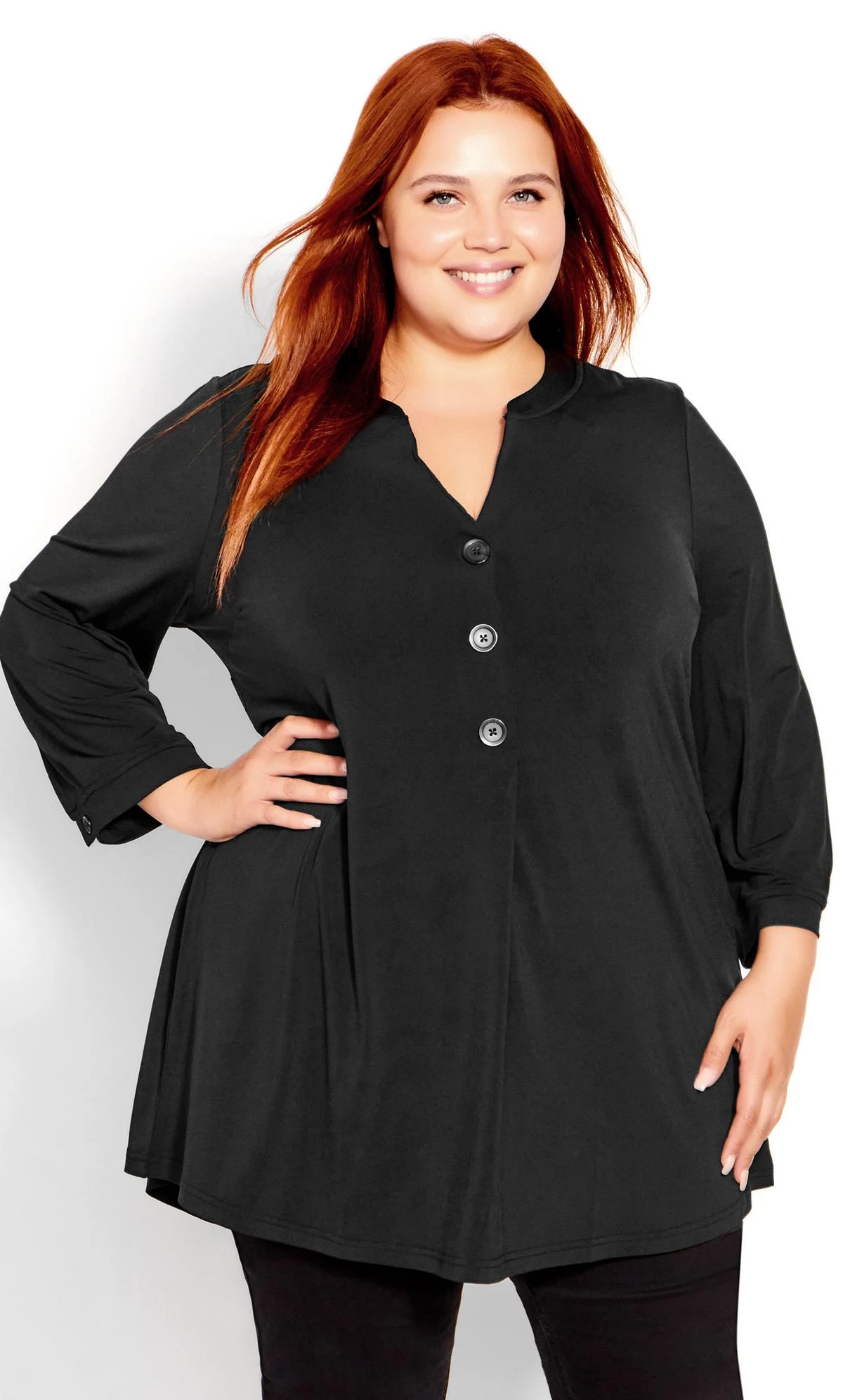 Elevate your look with the Avenue Black Half Placket Tunic Top. The classic black hue and stylish half placket design offer a blend of sophistication and modern flair. This tunic top effortlessly combines fashion and comfort, making it a versatile choice for various outfits. Embrace understated elegance with a contemporary twist in this essential piece.