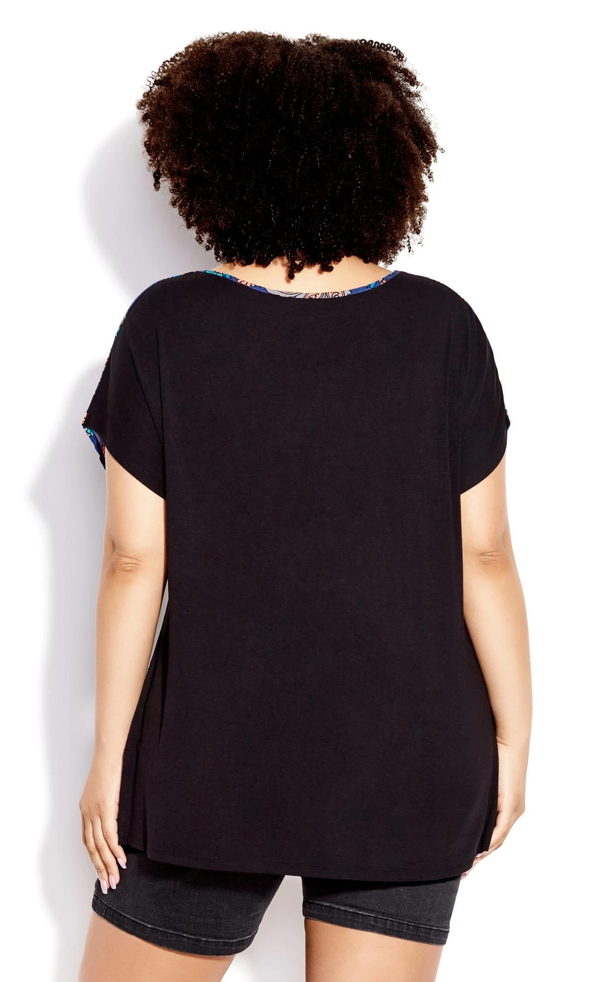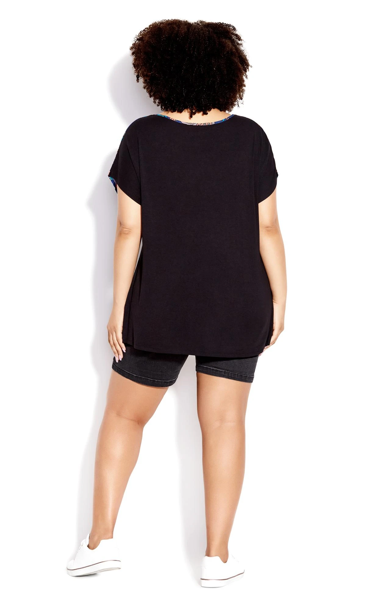 - Main: 100% Viscose. Contrast: 95% Viscose, 5% Elastane.