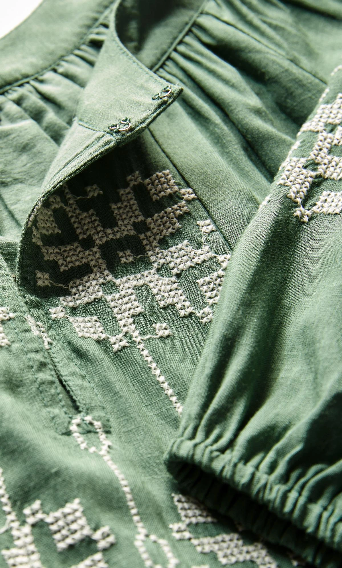 – Hook and eye closure neckline