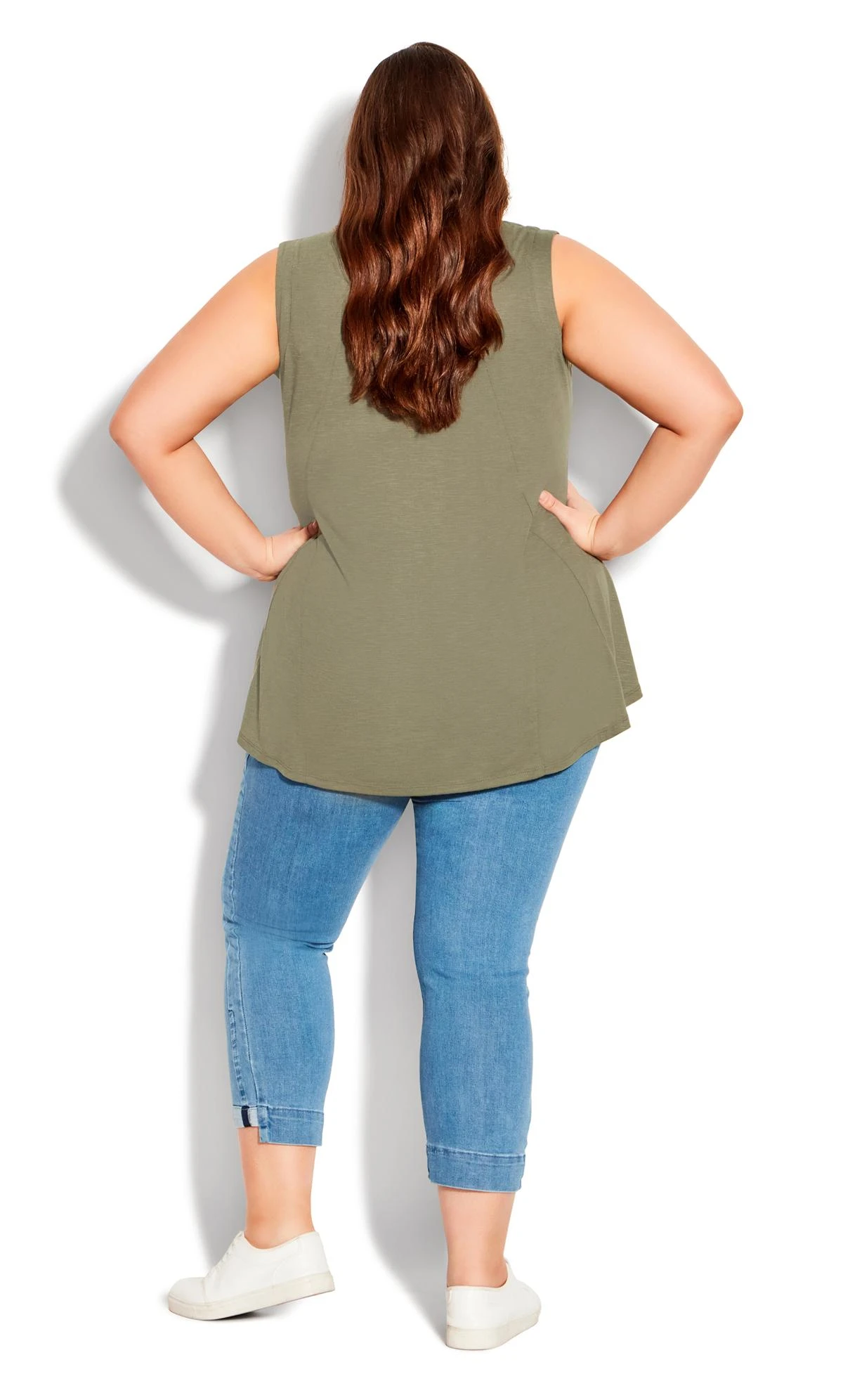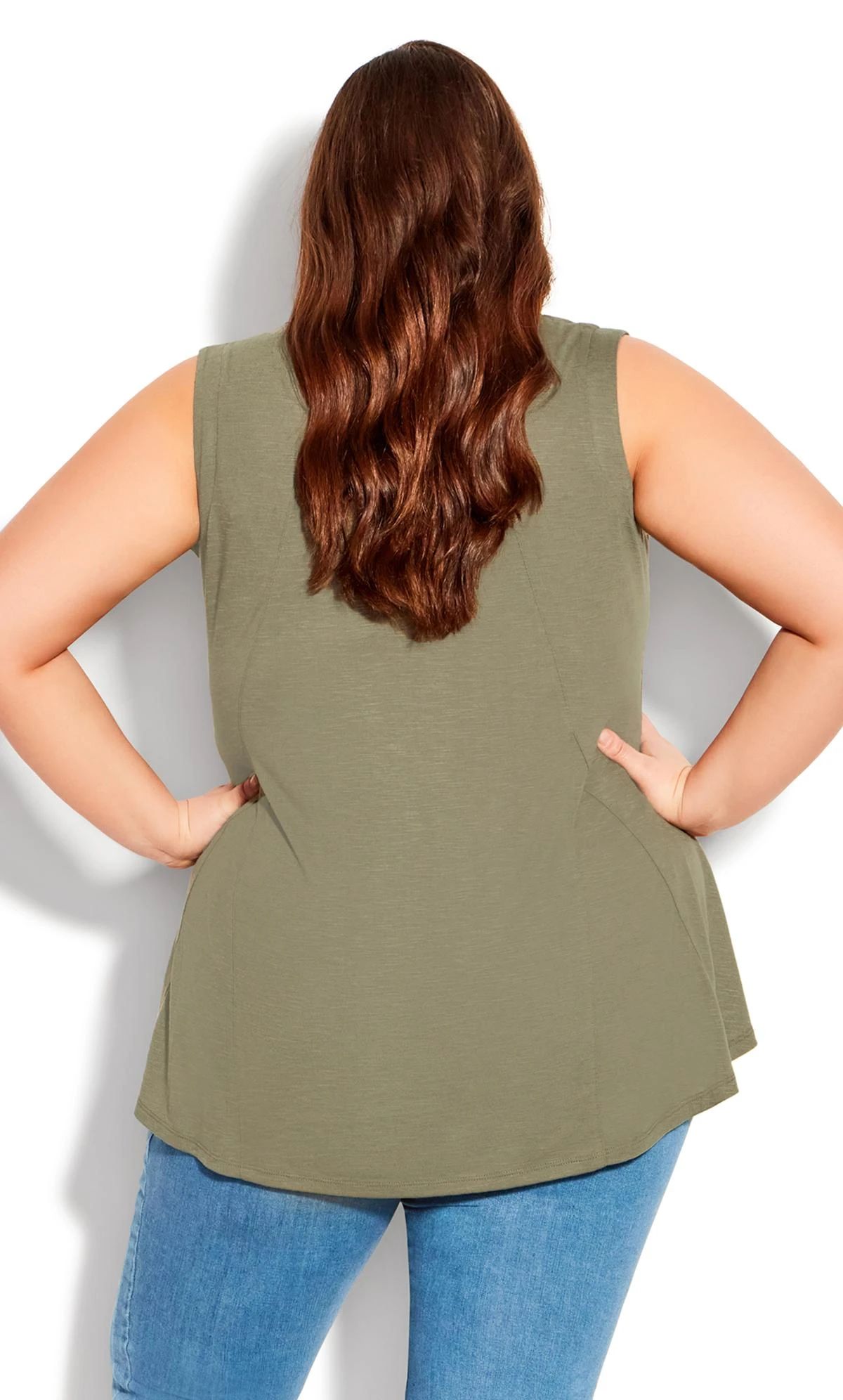 Discover casual sophistication with the Avenue Khaki Green Swing Vest Top. Its rich khaki green shade adds a touch of earthy elegance, while the relaxed swing design offers comfort and style. Whether paired with jeans or layered under a jacket, this versatile top effortlessly enhances your everyday look. Elevate your wardrobe with this essential piece that seamlessly blends fashion and ease for a confident and timeless ensemble.