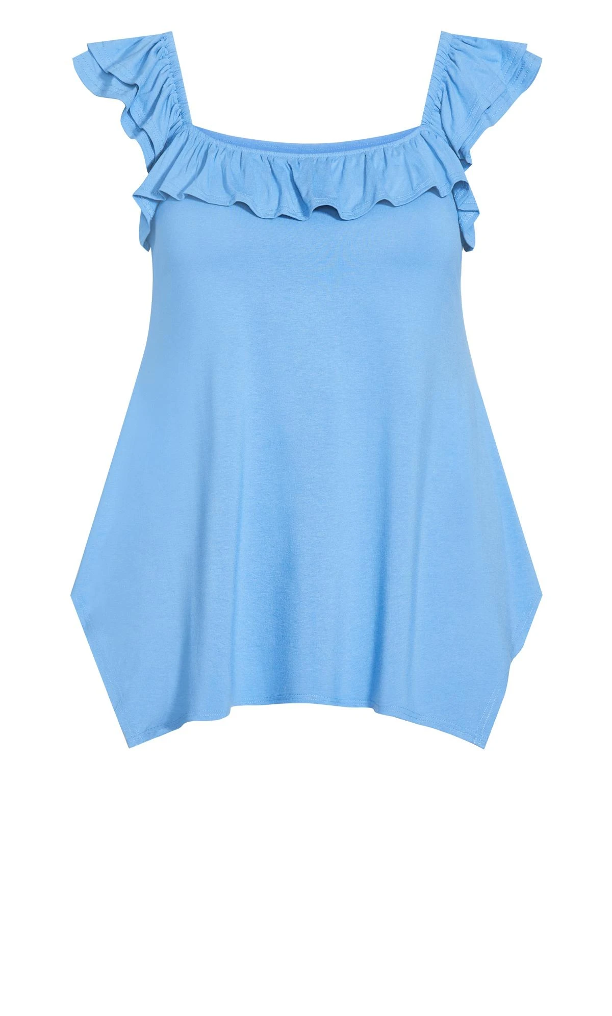 Elevate your summer wardrobe with the Avenue Bright Blue Frill Vest Top. Vibrant and versatile, this top boasts a refreshing bright blue shade that captures the essence of sunny days. The charming frill detail adds a touch of playfulness, making it a perfect choice for both casual outings and stylish gatherings. Crafted for comfort and style, this vest top effortlessly blends fashion and fun for a look that stands out all season long.