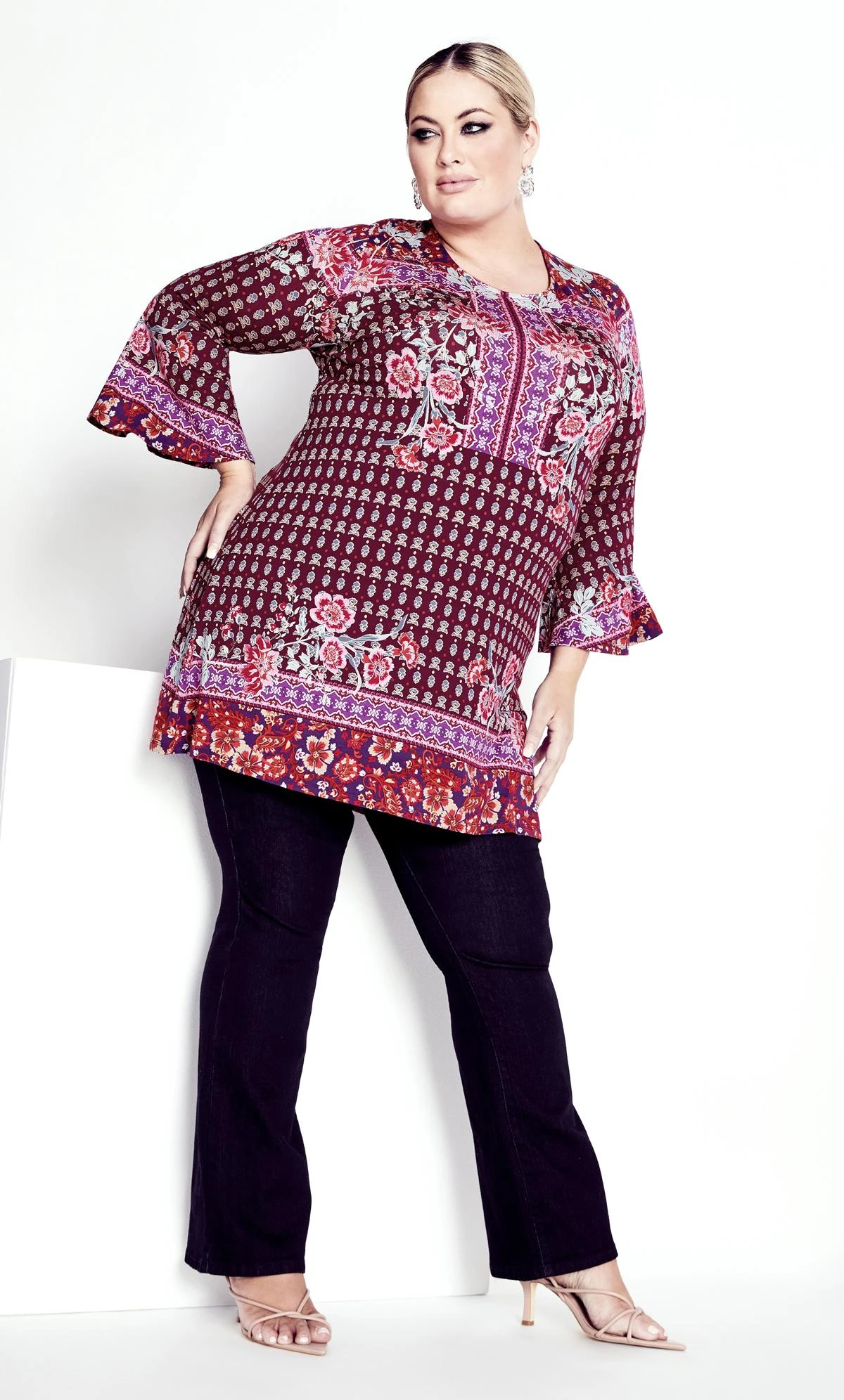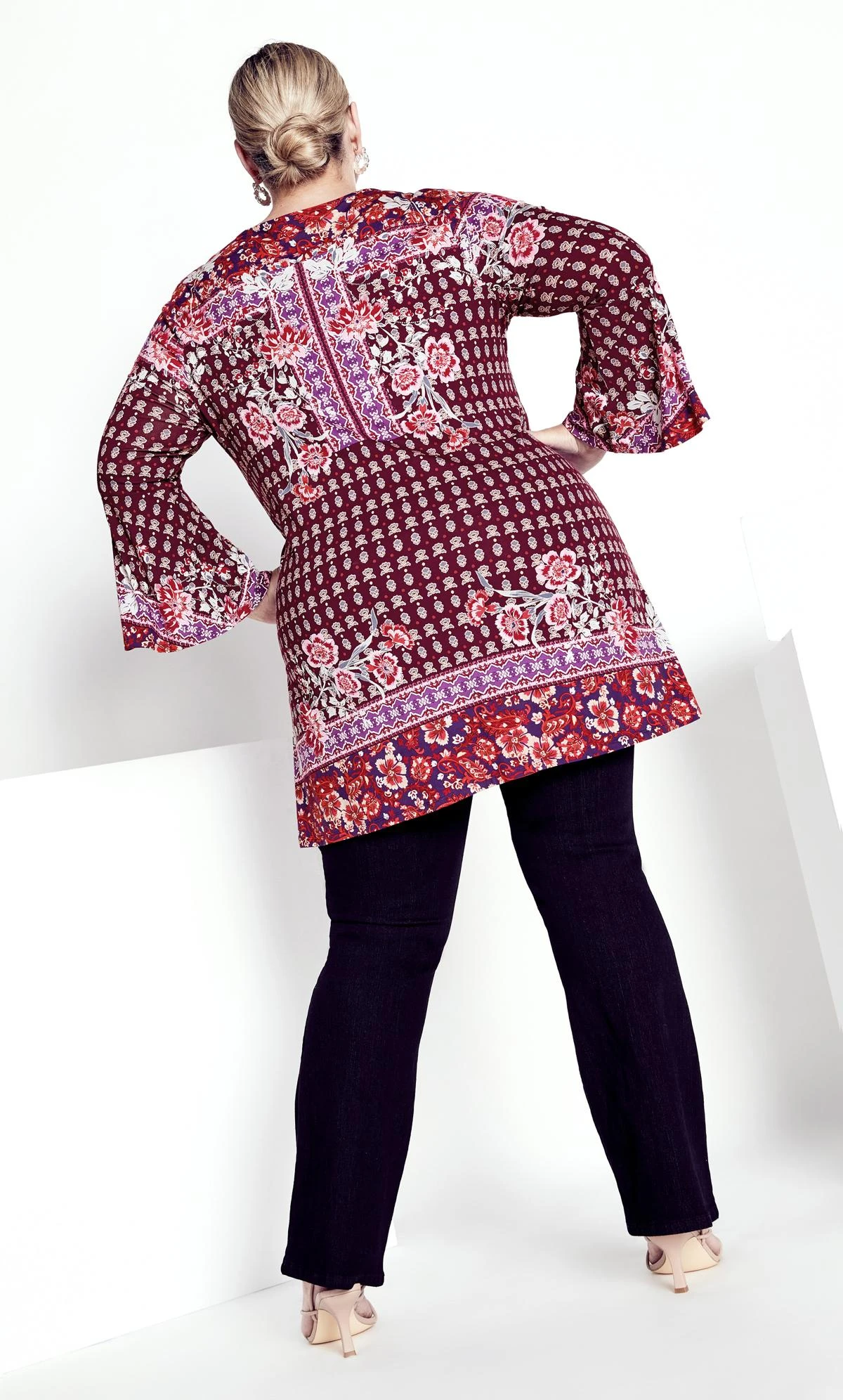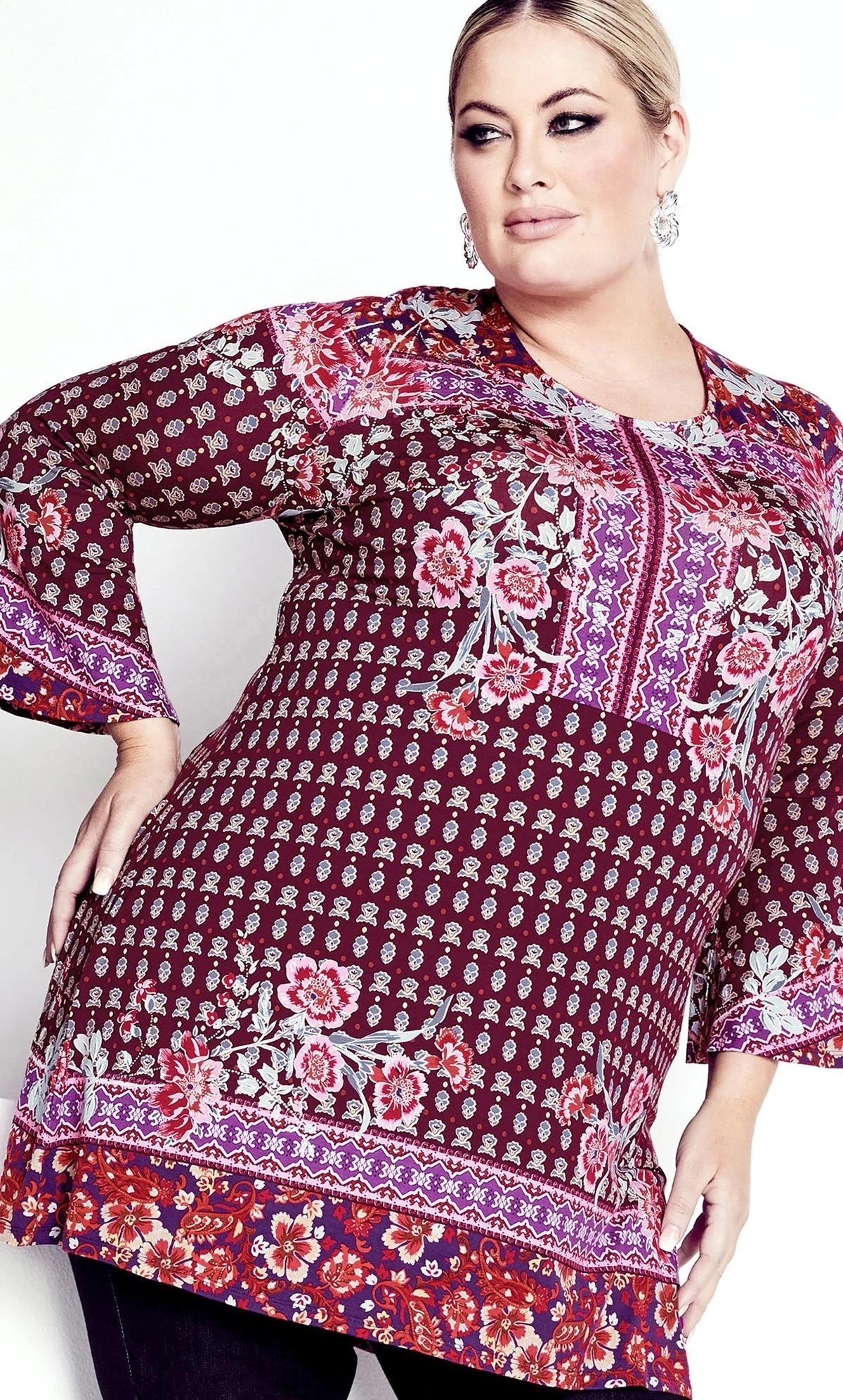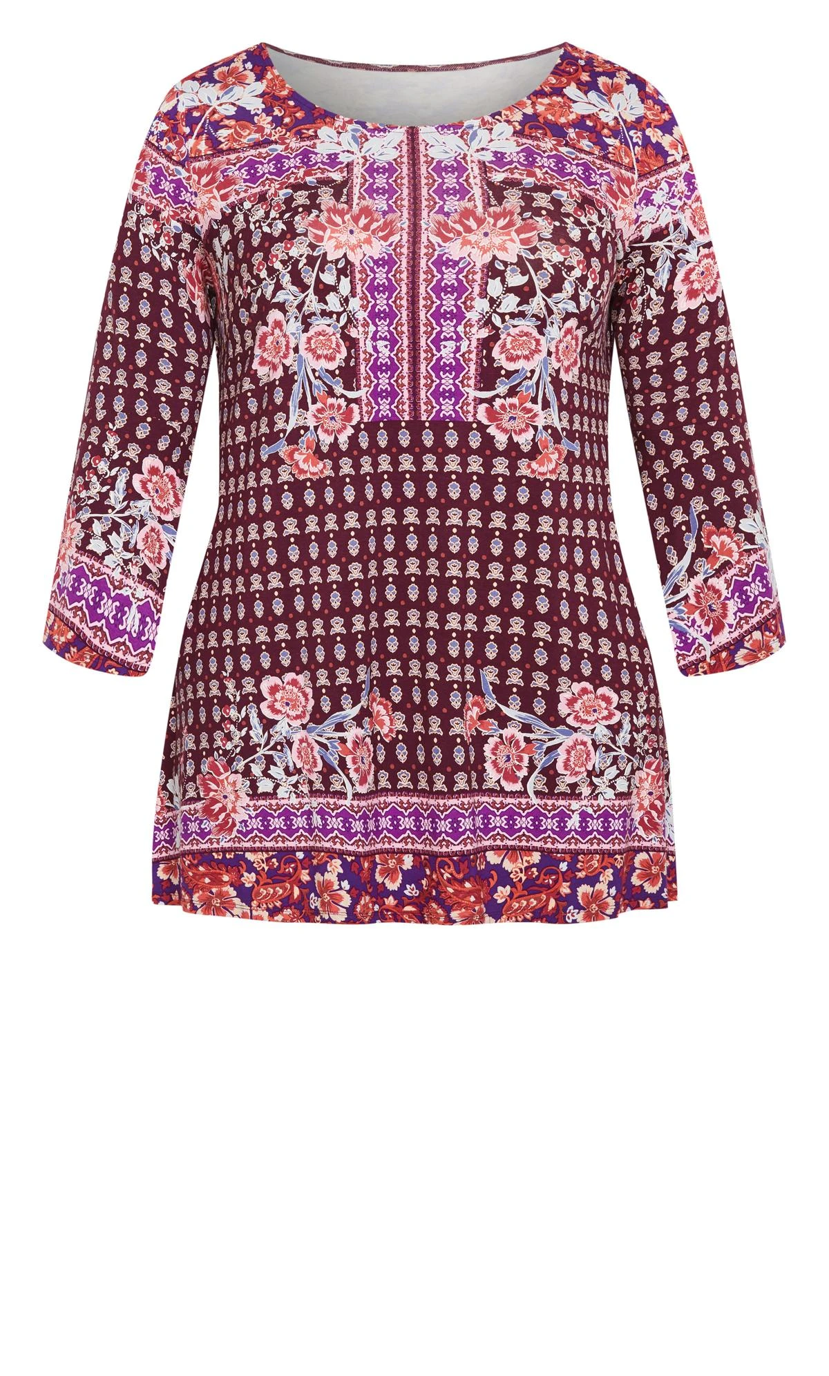 Avenue Mixed Floral Print Long Sleeve Tunic Top