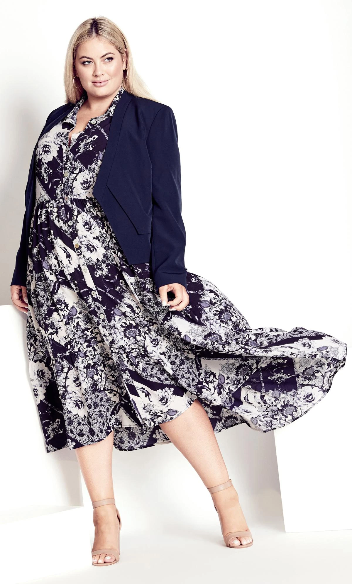 Layer on a navy duster jacket and tall boots for a coordinated, trans-seasonal look.