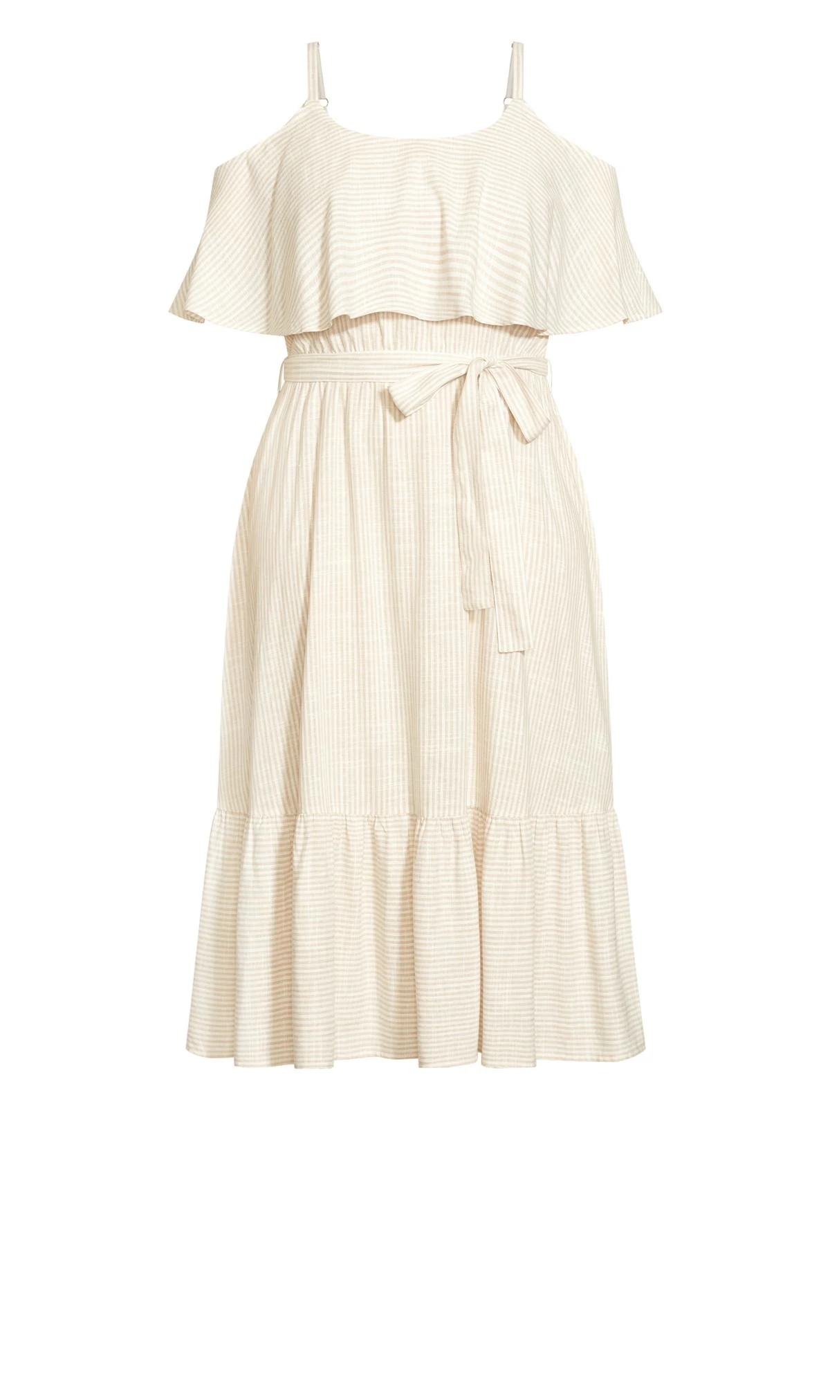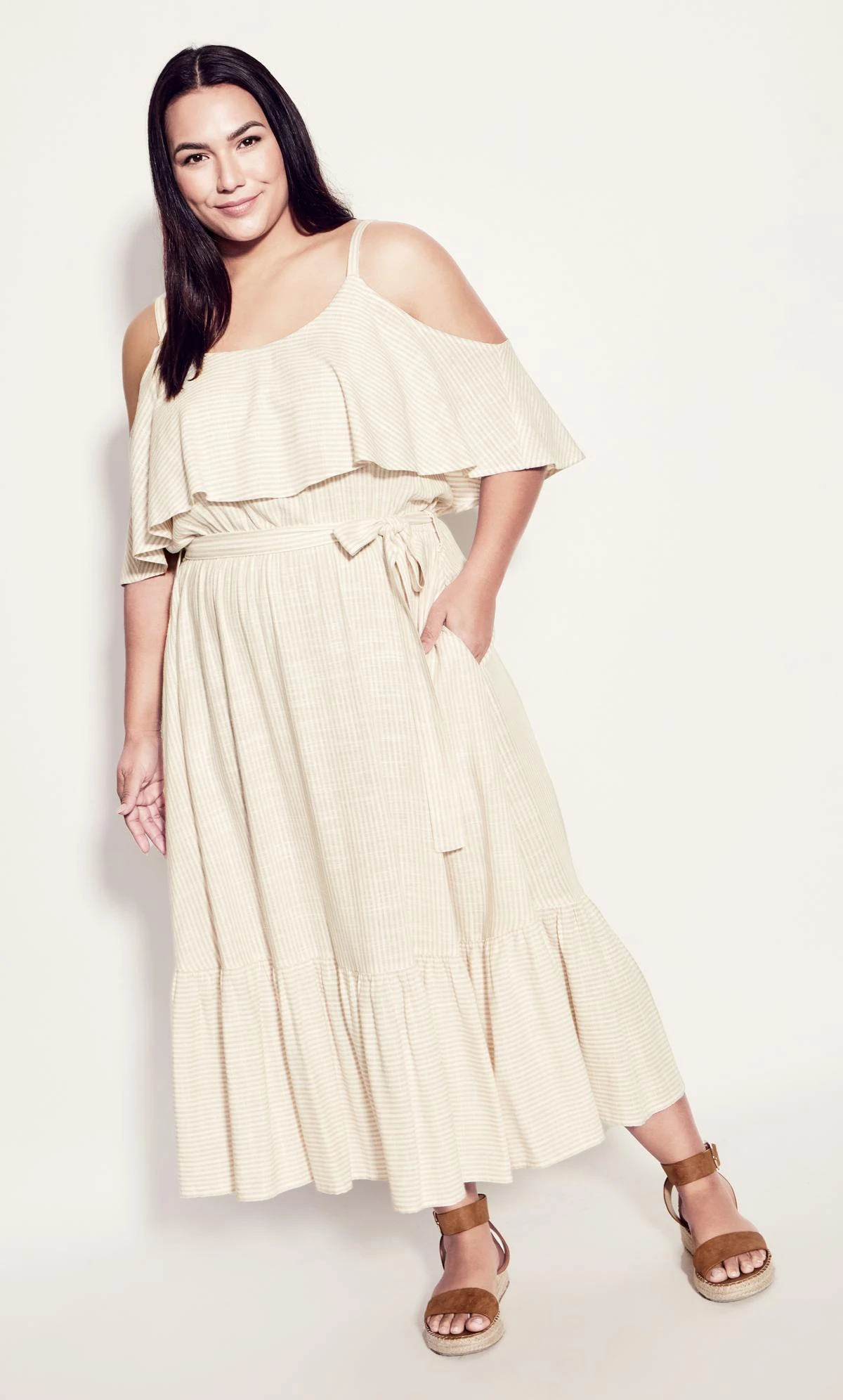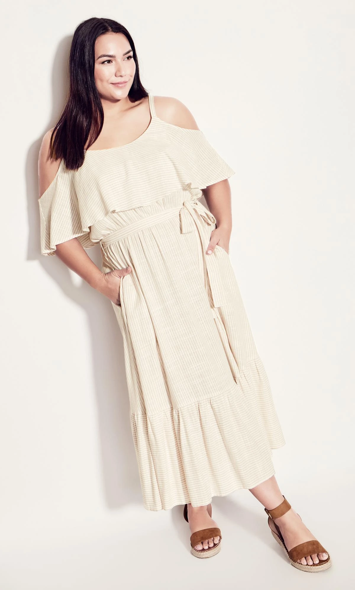 – Thin adjustable shoulder straps and cold shoulder short flutter sleeves