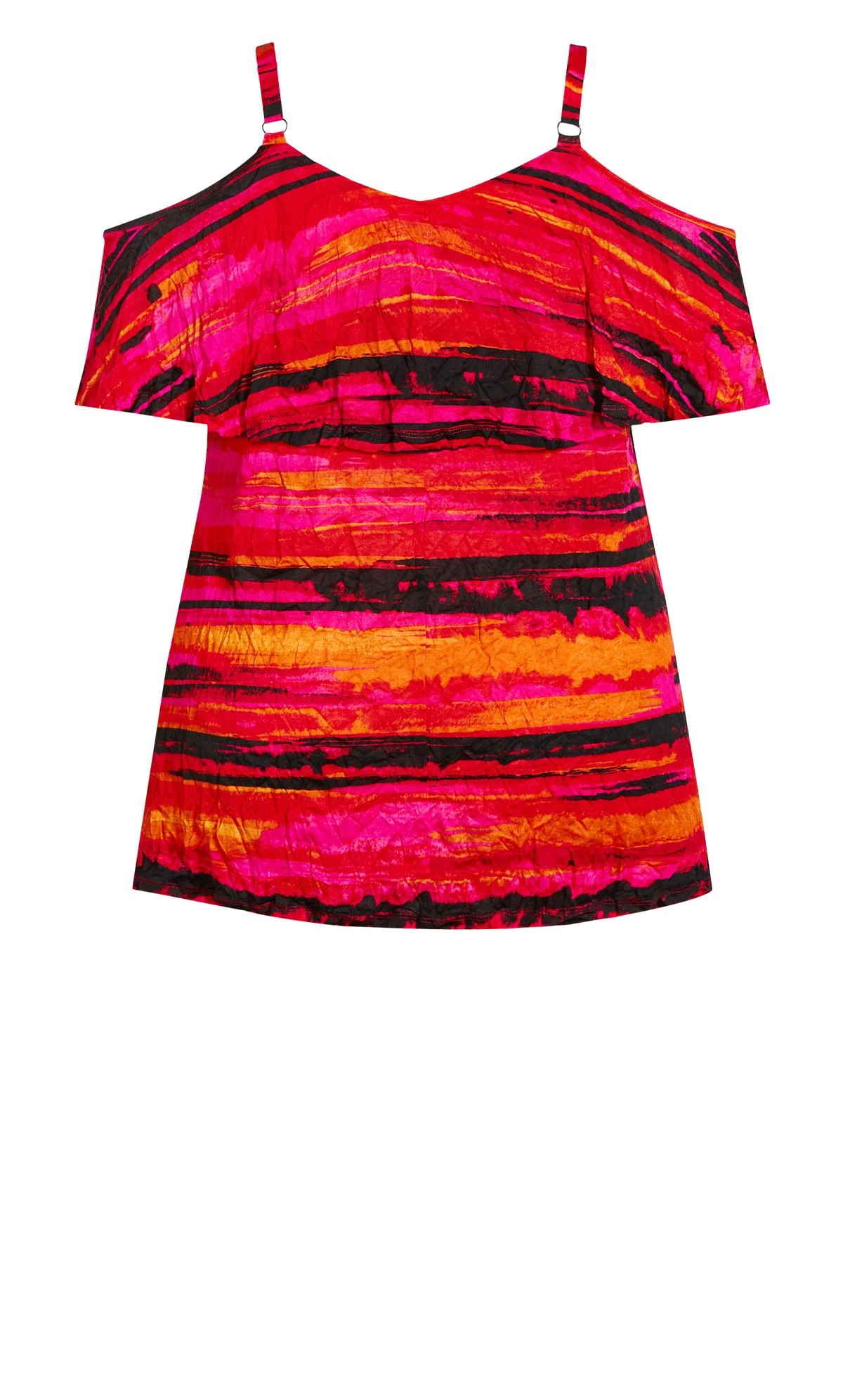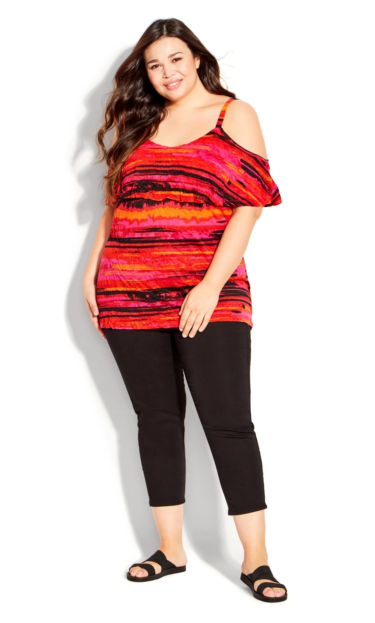 Embrace casual chic with Avenue Orange Tie Dye Cold Shoulder Top. The tranquil blue hues meet a trendy tie-dye pattern, creating a stylish and relaxed ensemble. With cold shoulder detailing, this top effortlessly balances comfort and fashion, making it a must-have for effortlessly stylish looks.