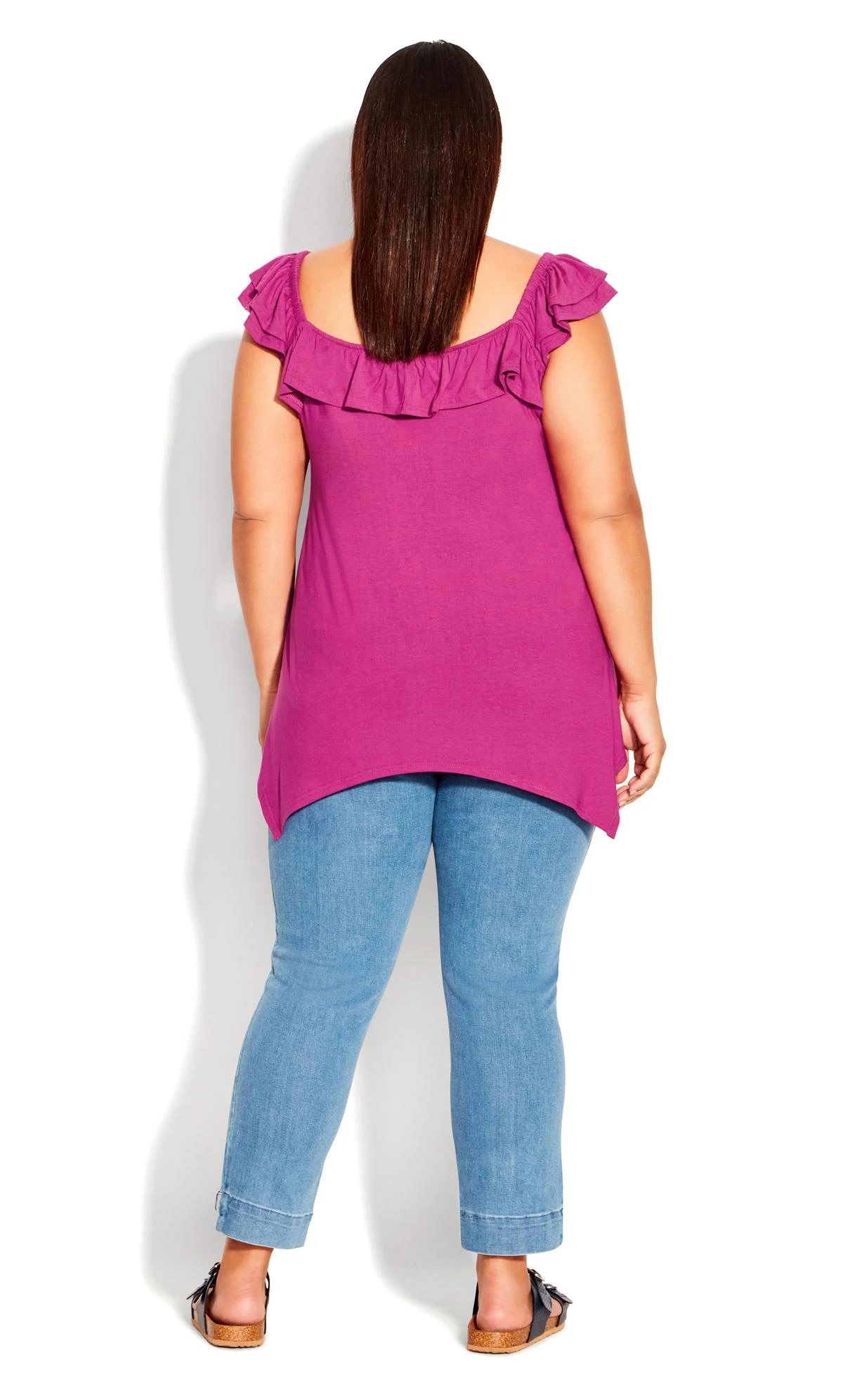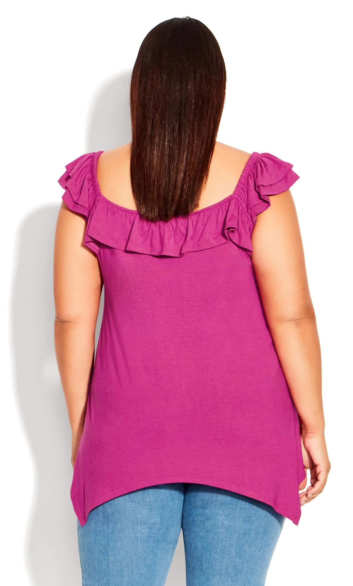 Elevate your casual style with the Avenue Pink Frill Hanky Hem Vest Top. Delicate frills cascade along the hanky hem, adding a playful touch to this versatile piece. The soft pink hue exudes femininity, while the relaxed fit ensures comfort. Whether paired with jeans or shorts, this vest top brings a fresh and flirty vibe to your summer wardrobe.