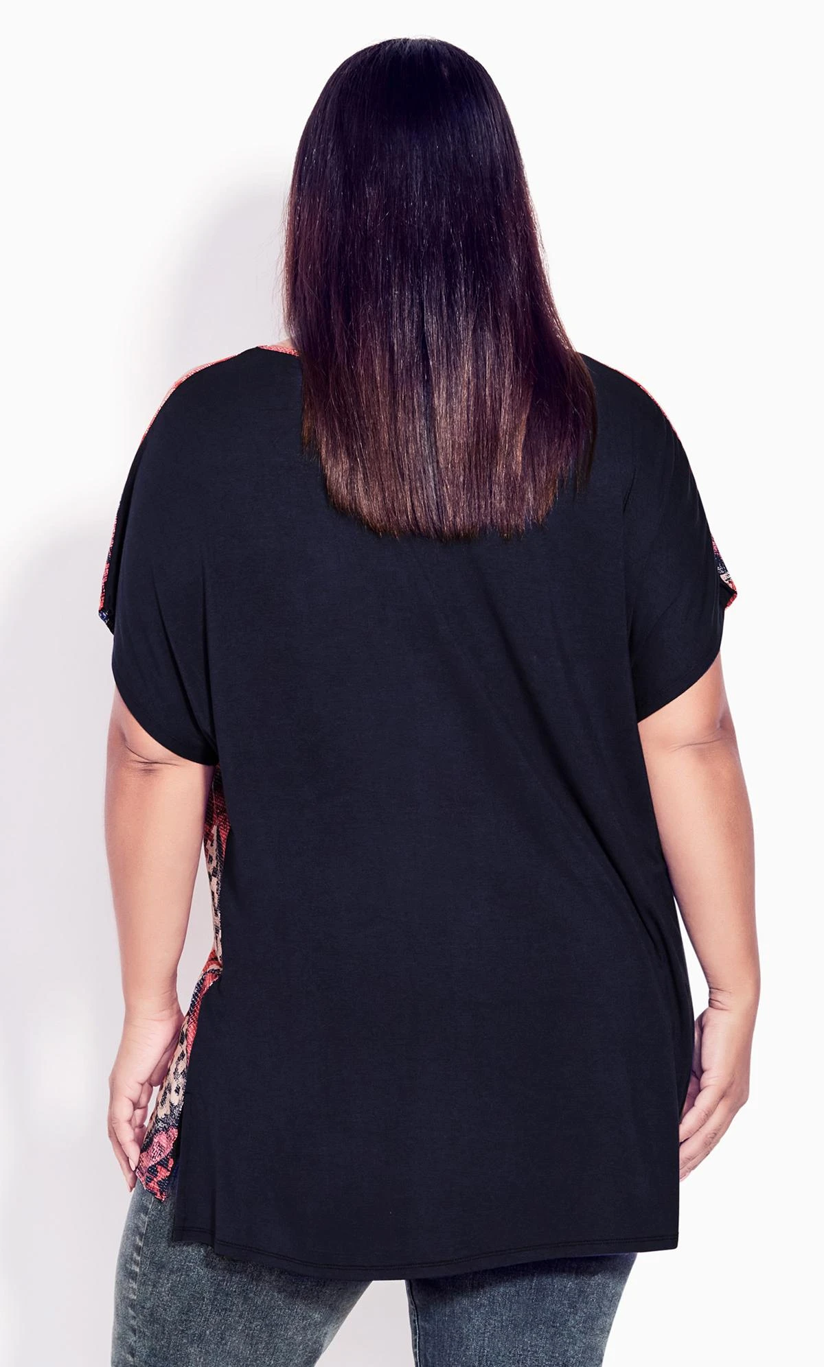 Elevate your casual wardrobe with the Avenue Red Aztec Print T-Shirt. The vibrant Aztec print adds a pop of color and personality to this classic tee. Embrace comfort and style effortlessly, whether it’s a laid-back day out or a casual evening with a touch of flair.