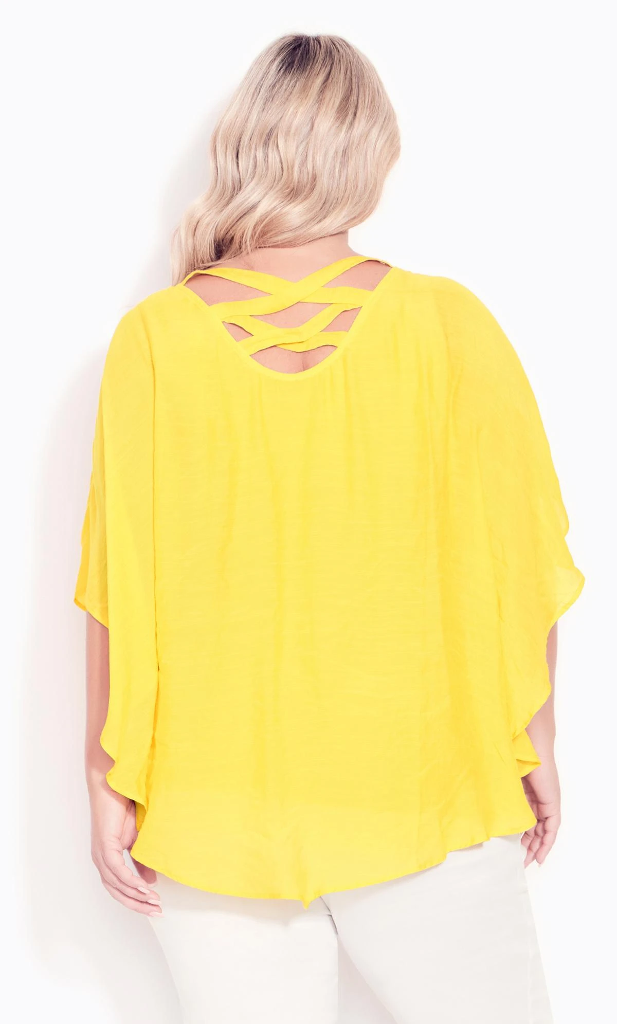 Add a pop of color to your look with Avenue’s Yellow Cut Out Back Top. This top seamlessly blends style and allure, featuring a vibrant yellow hue and a chic cut-out back detail. Whether paired with jeans or skirts, embrace both fashion and versatility with this essential piece.
