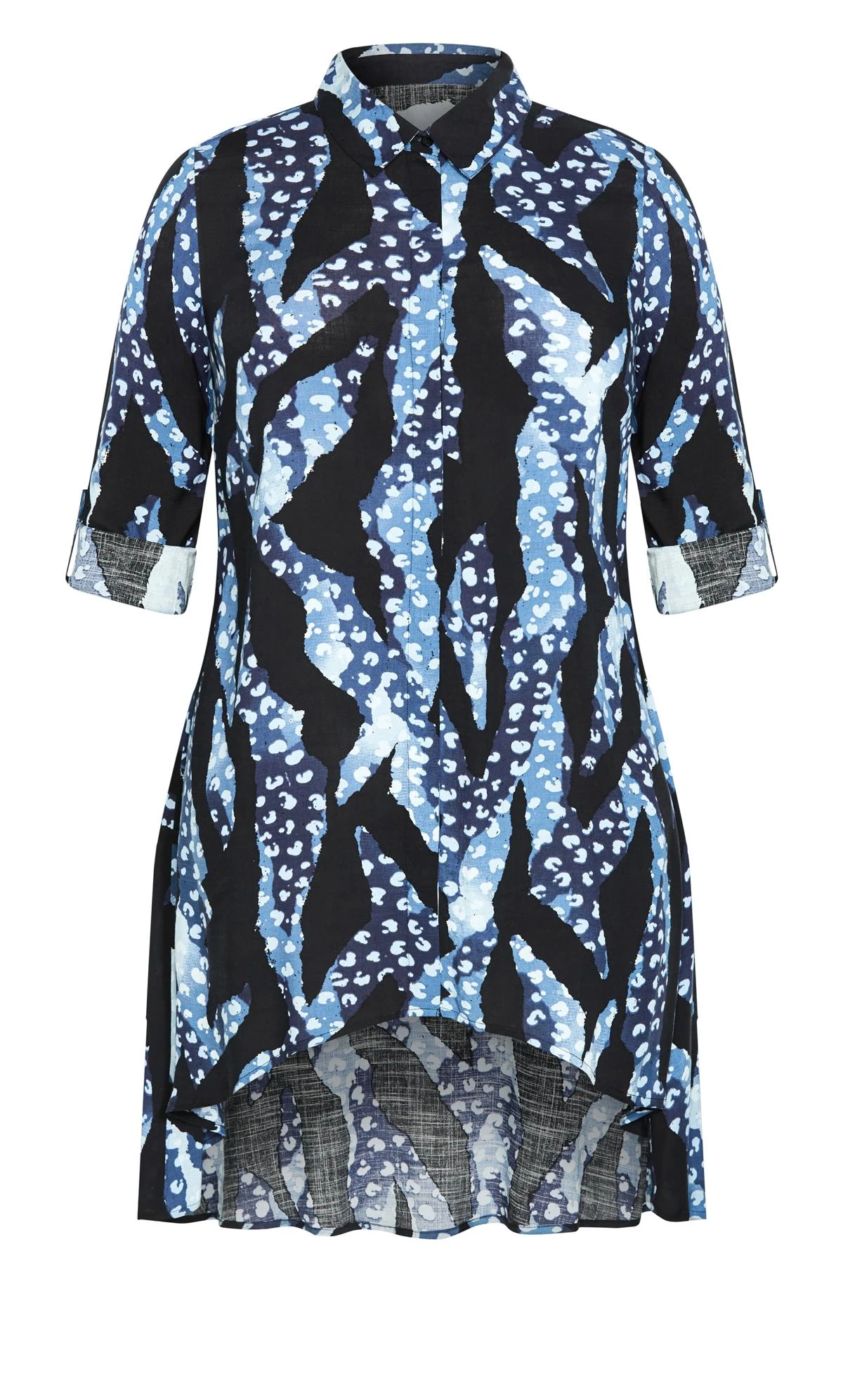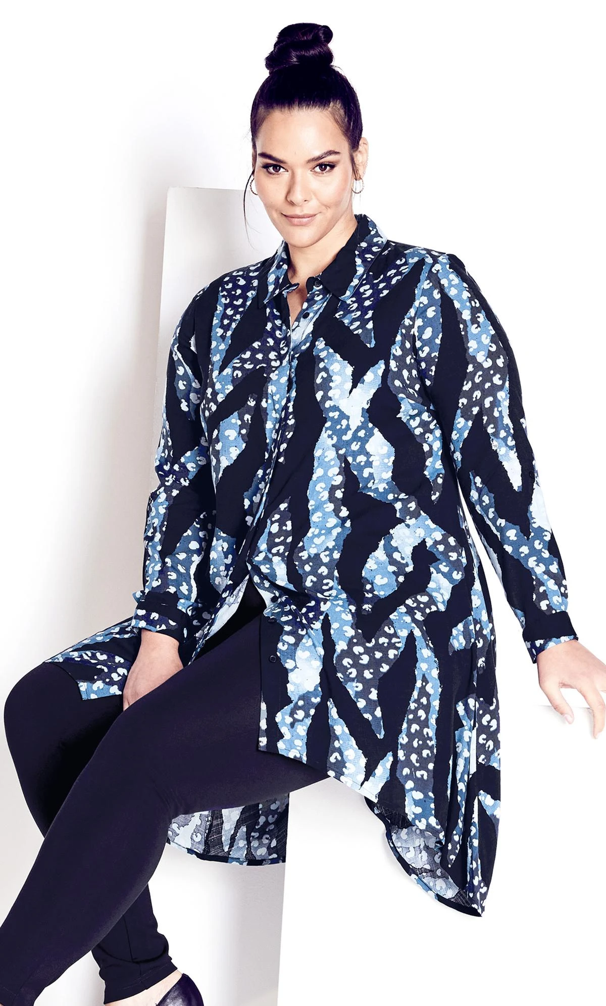 The Zim & Zoe Sapphire Blue Longline Shirt showcases contemporary sophistication through its striking sapphire blue hue and modern longline design. With its impeccable tailoring and high-quality fabric, this shirt effortlessly elevates any ensemble. Whether worn as a statement piece or for a polished everyday look, the Zim & Zoe Sapphire Blue Longline Shirt offers timeless style with a touch of modern flair.