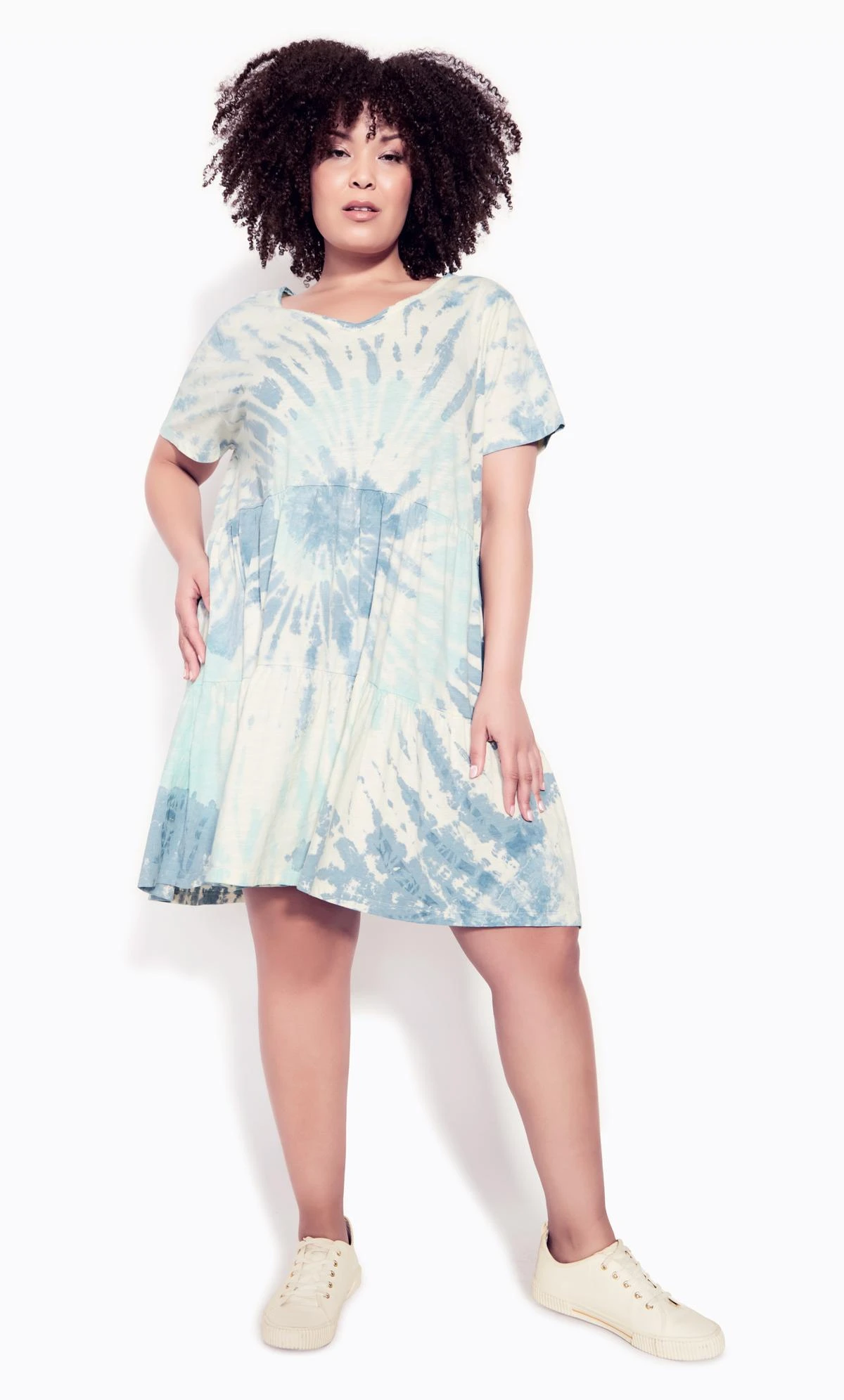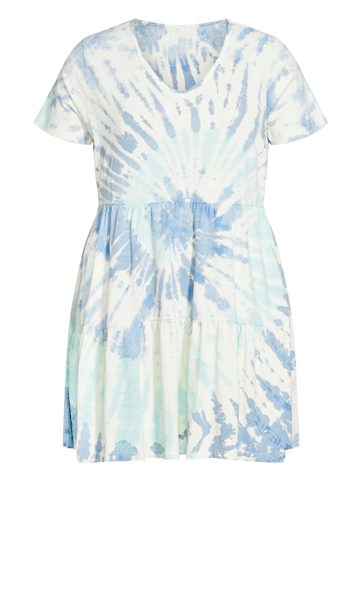 Infuse your style with playful charm in the Zim & Zoe White & Blue Tie Dye Tiered Mini T-Shirt Dress. The white base boasts a captivating tie-dye pattern, while the tiered design adds a touch of whimsical flair. Perfect for effortless summer days or casual outings, this mini dress effortlessly combines comfort and trendiness for a standout look.