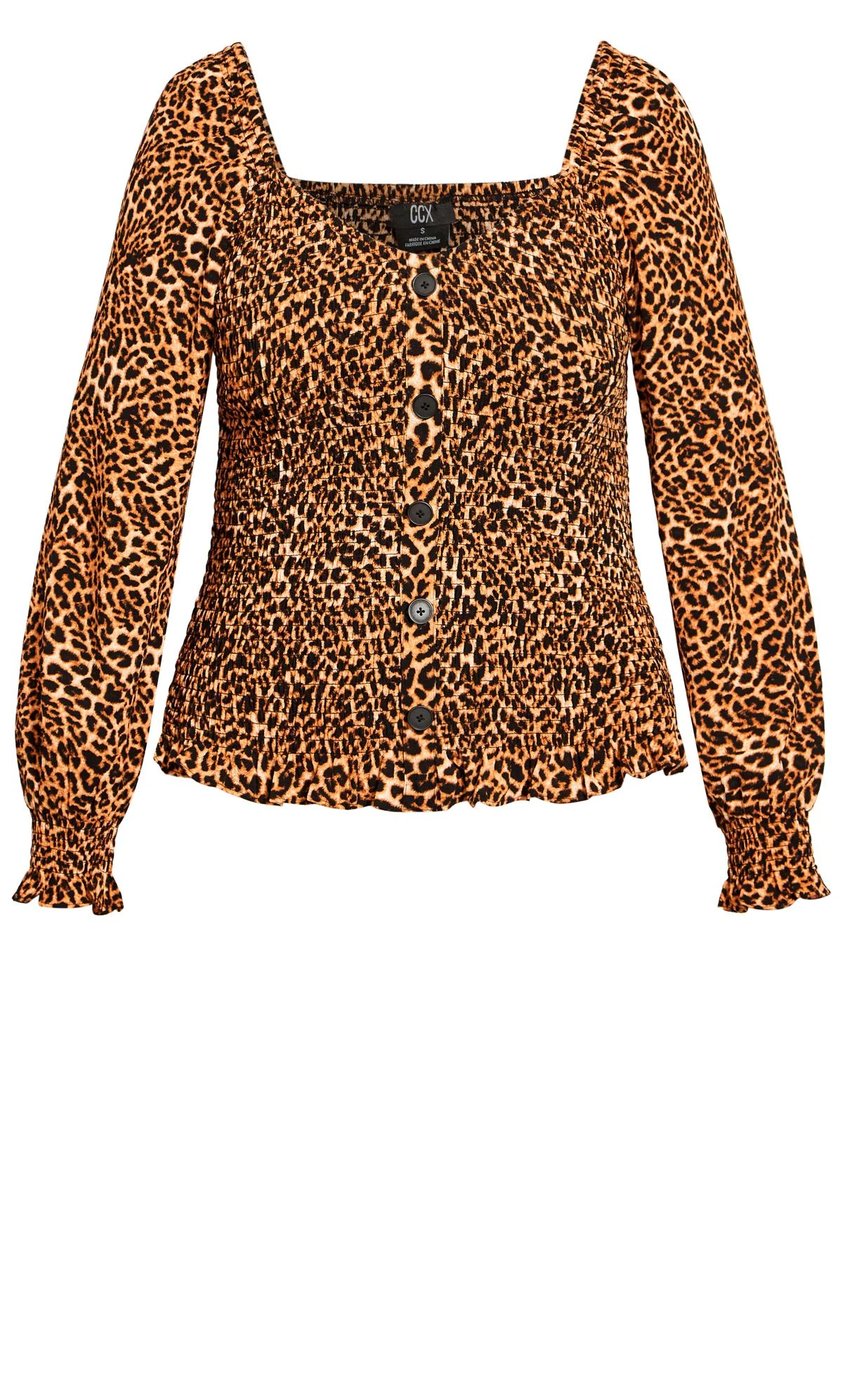 Unleash your wild side with the City Chic Animal Print Top. This trendy and versatile top showcases a captivating animal print that effortlessly combines boldness and style. Elevate your wardrobe with this must-have long sleeve top, perfect for creating chic and edgy outfits for any occasion.