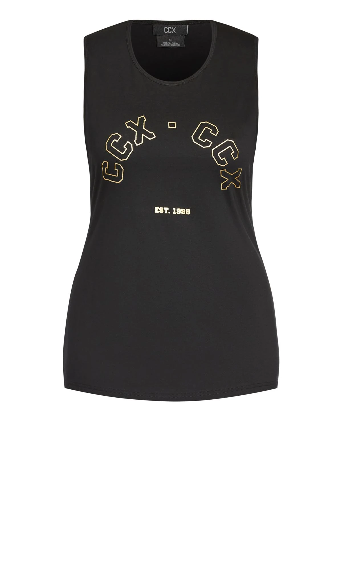 This active tank top features a black colour with a white lettering, a scoop neck, and a racerback. The stretchy and breathable fabric will allow you to move freely and stay dry, and the flattering fit will enhance your shape and confidence. The City Chic Black Active Tank Top is perfect for any activity, whether you’re hitting the gym, going for a run, or doing yoga. Pair with active leggings or joggers.
