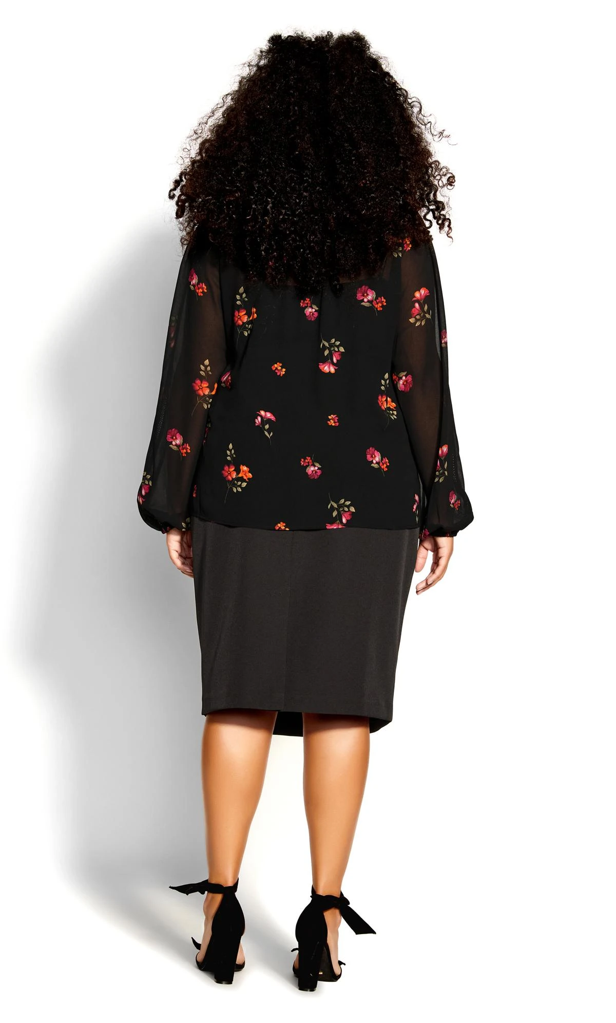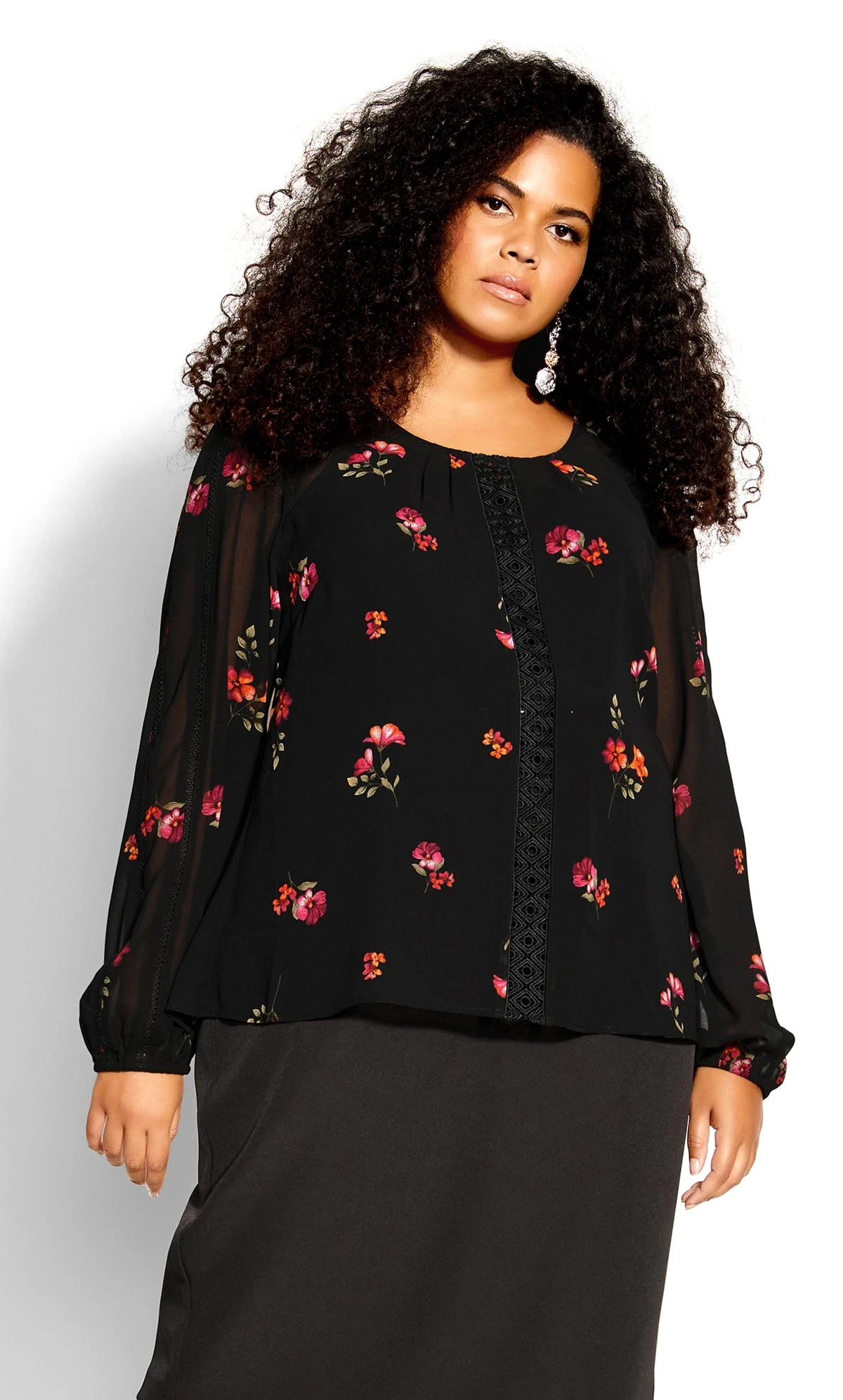Step into timeless elegance with the City Chic Black Floral Blouse. The captivating floral pattern adds a touch of femininity to this classic black blouse. Elevate your style effortlessly, whether it’s for work or a chic evening affair.