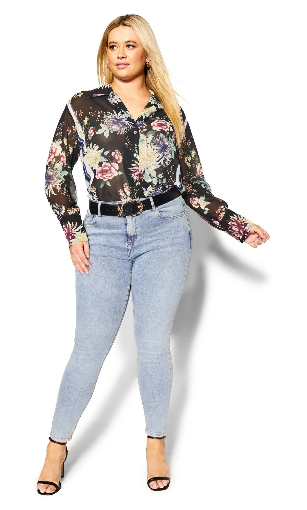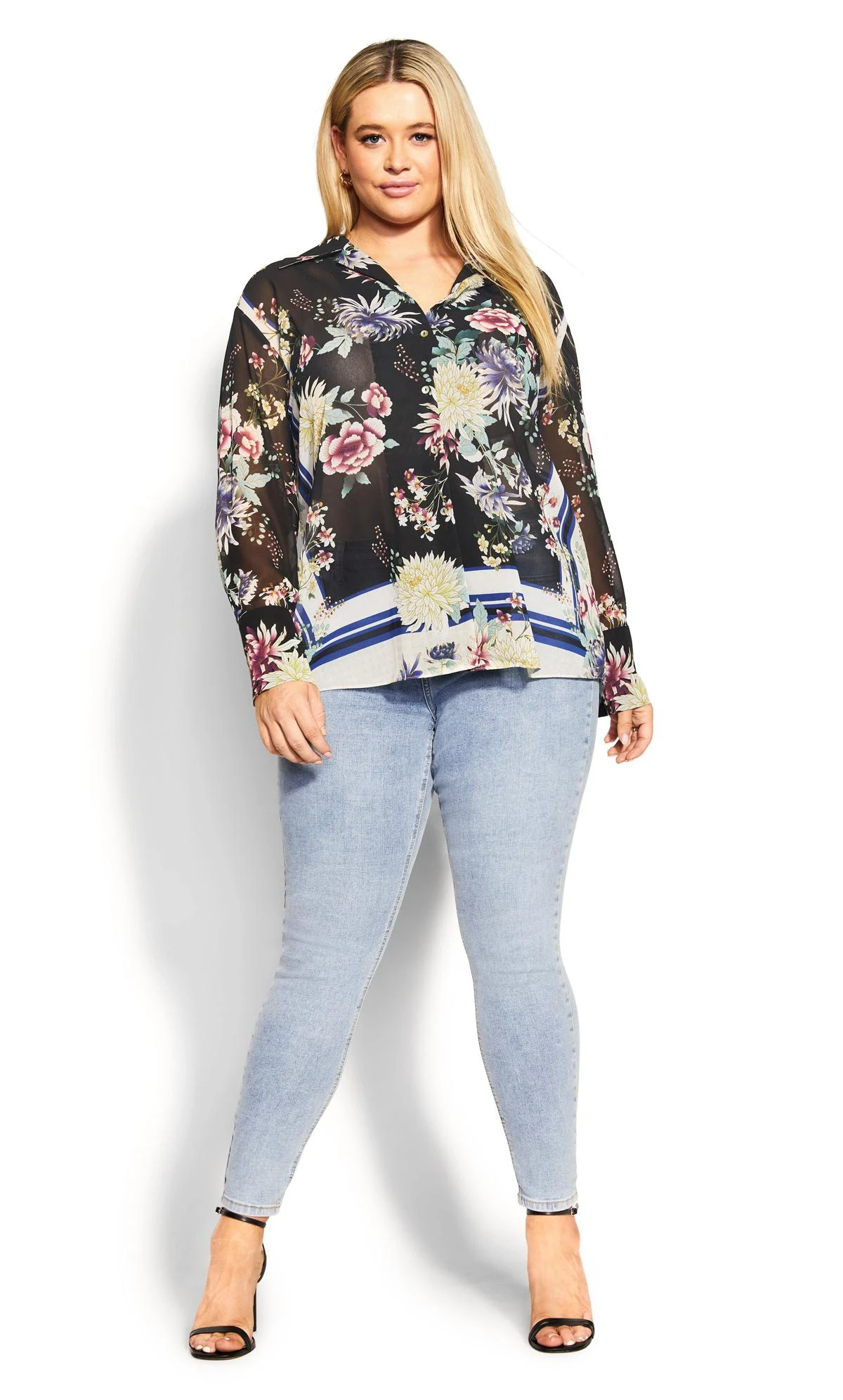 Step into timeless elegance with the City Chic Black Floral Print Shirt. The classic black backdrop is adorned with delicate floral motifs, creating a harmonious blend of sophistication and charm. Elevate your ensemble with this versatile shirt, perfect for both formal occasions and adding flair to your everyday look.