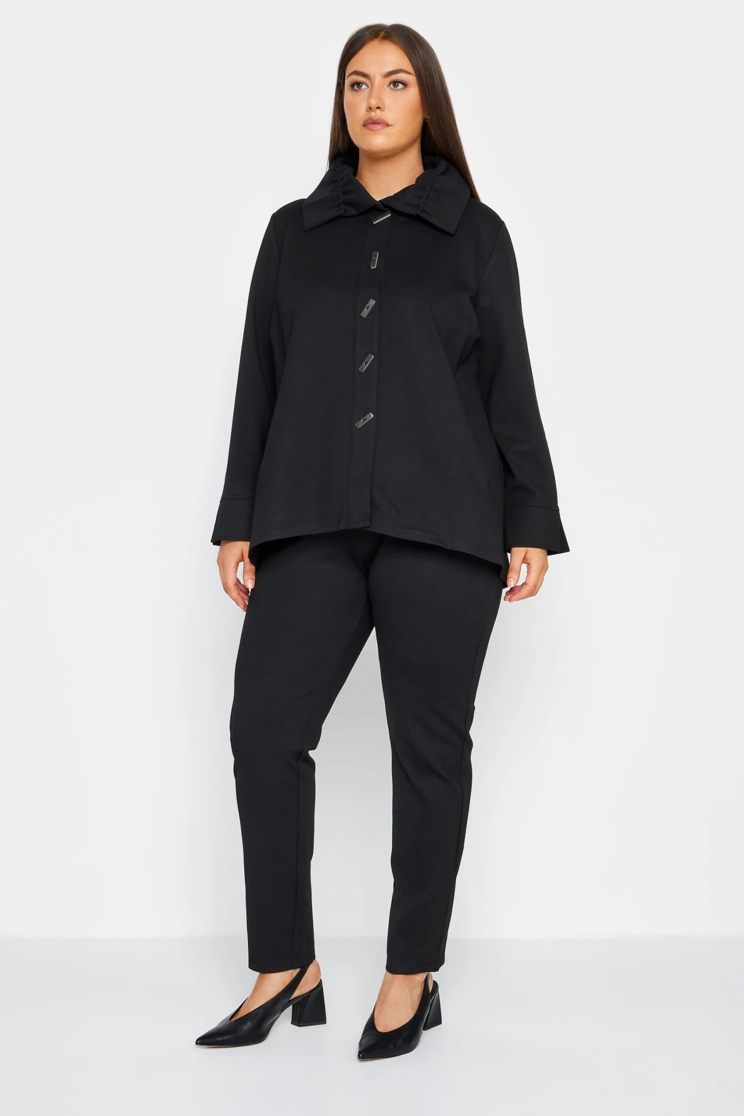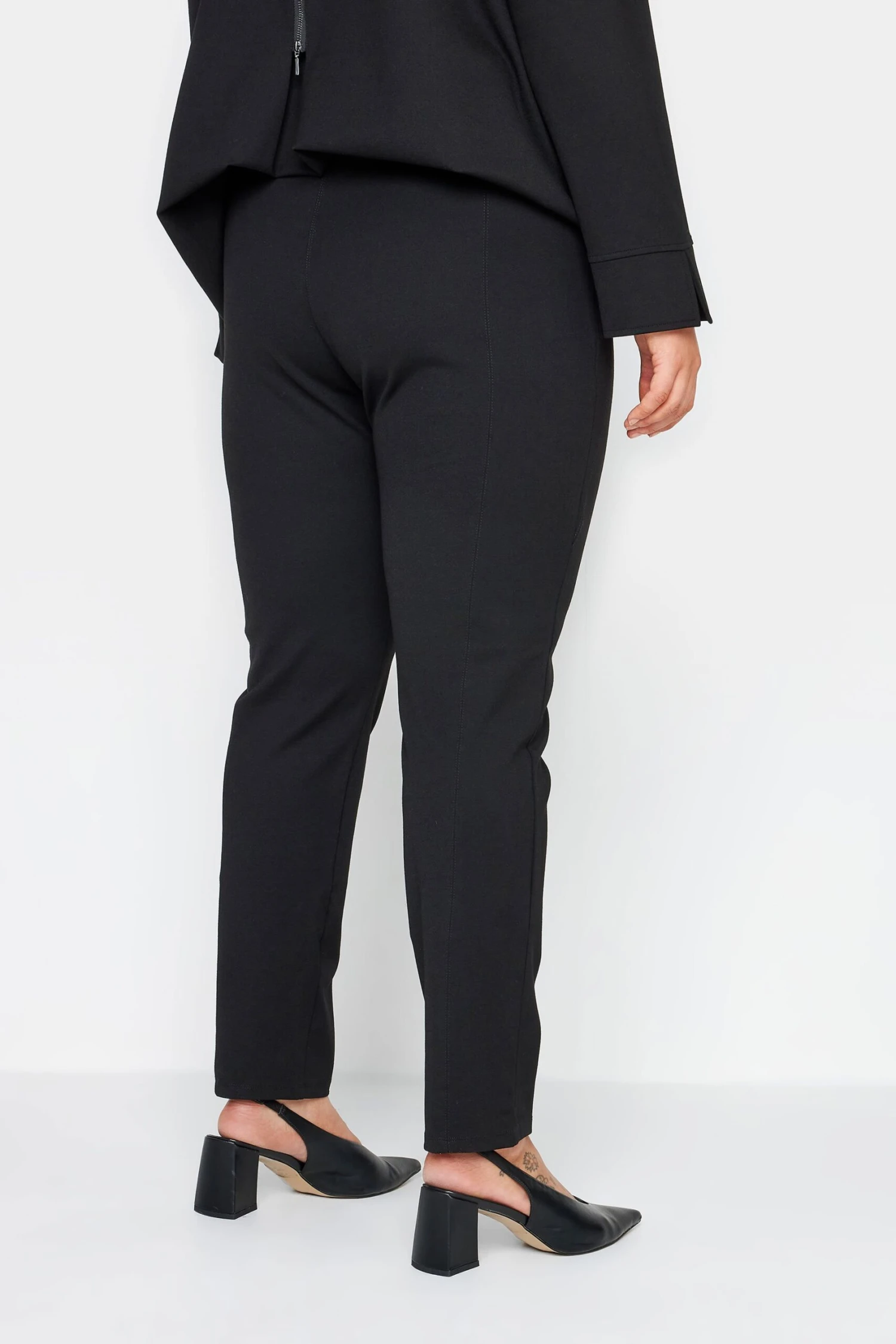 The City Chic Black Slim Leg Ponte Trousers offer a sleek and sophisticated silhouette, crafted from a luxurious ponte fabric that provides both comfort and structure. These versatile trousers are a style staple, designed with a slimming leg shape that easily transitions from day to night, making them a must-have addition to any fashion-forward wardrobe.