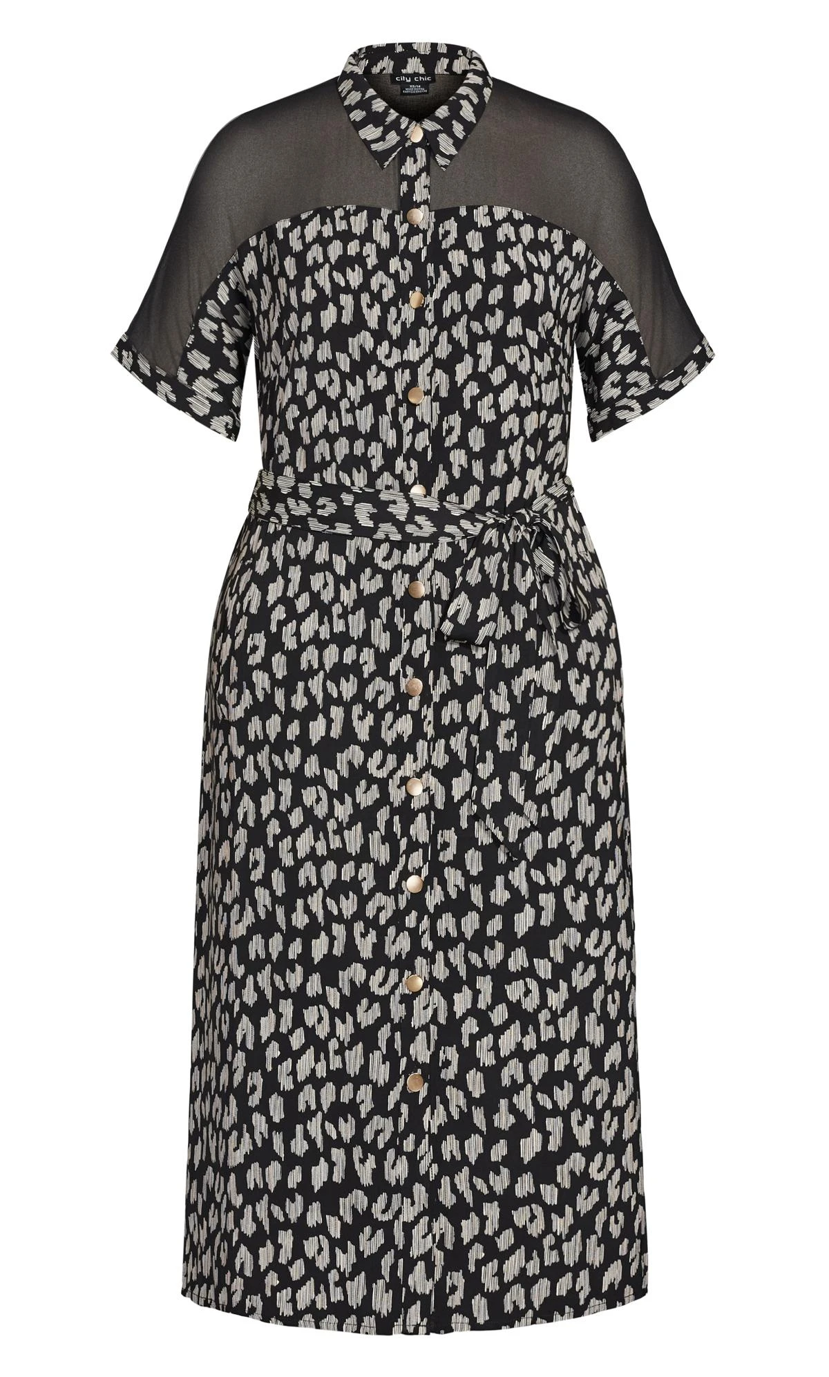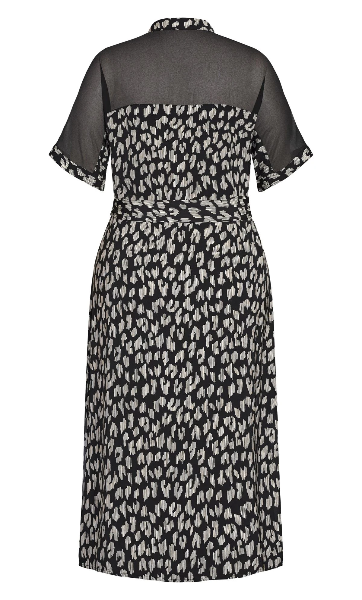 – Short sleeves with sheer mesh detail