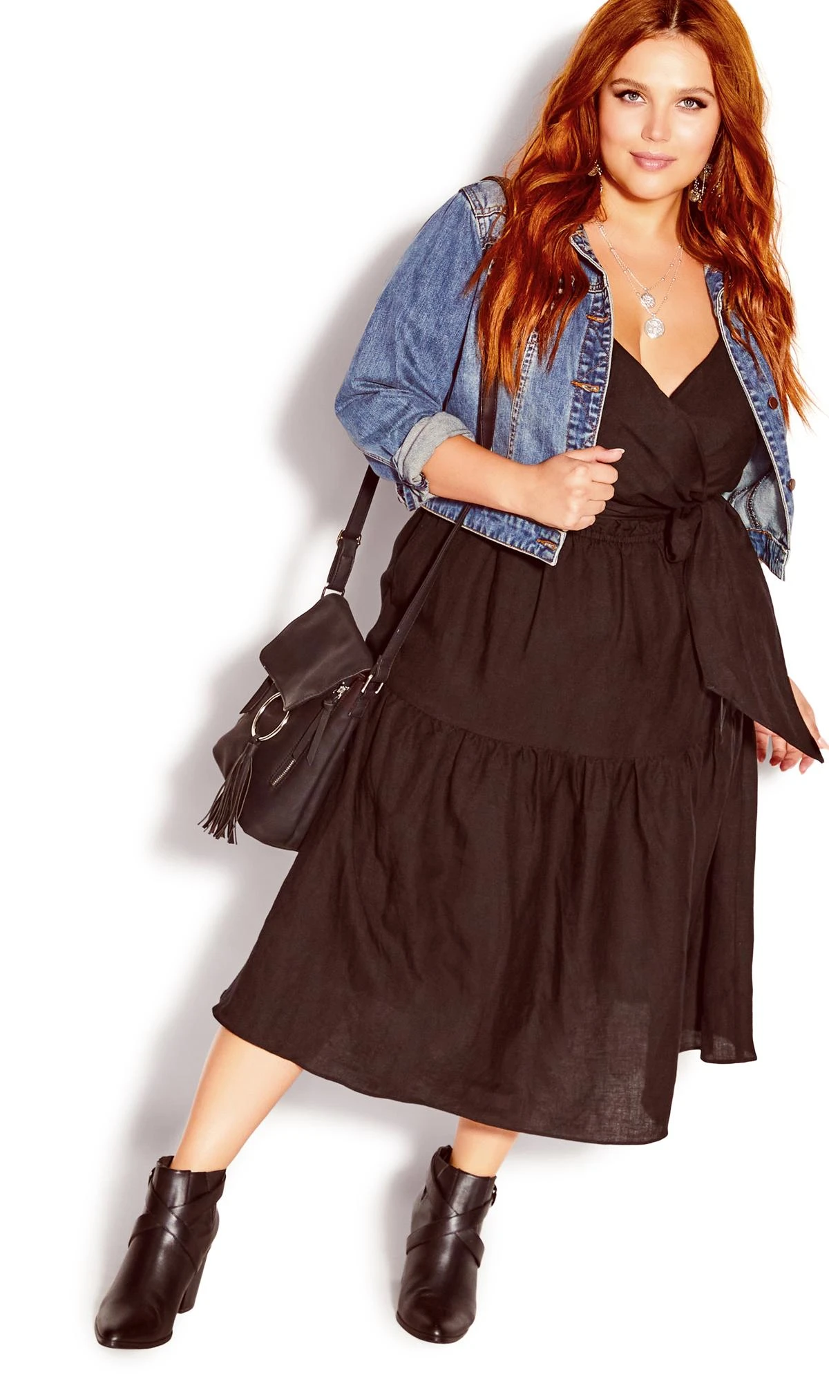 Dress it up with strappy block heels and a pair of sparkling gold drop earrings.