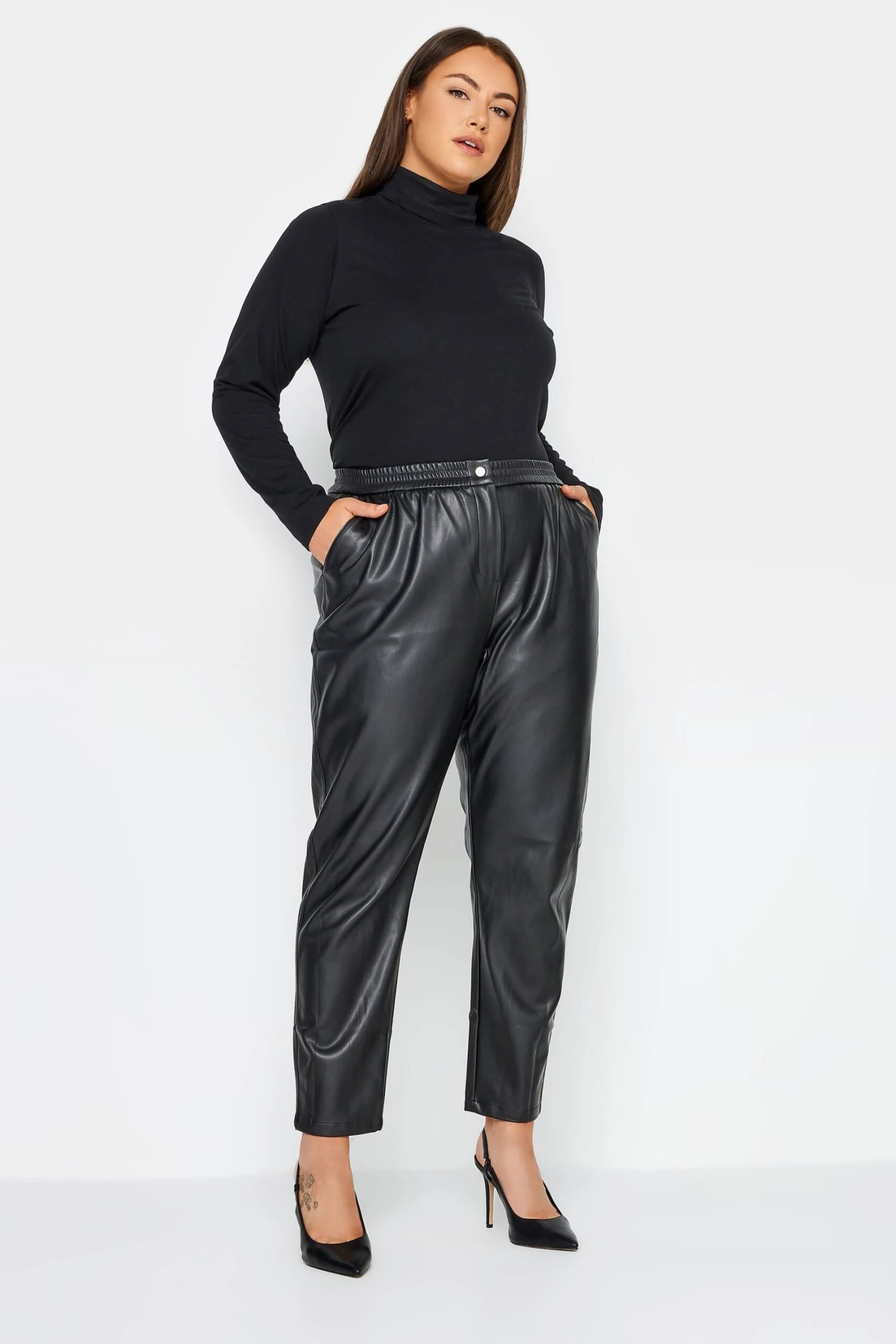 The City Chic Black Vegan Leather Trousers are a bold and contemporary choice, offering the luxurious appeal of leather with a cruelty-free composition. With their sleek design and comfortable fit, these trousers are a versatile piece, perfect for those looking to make a stylish statement.