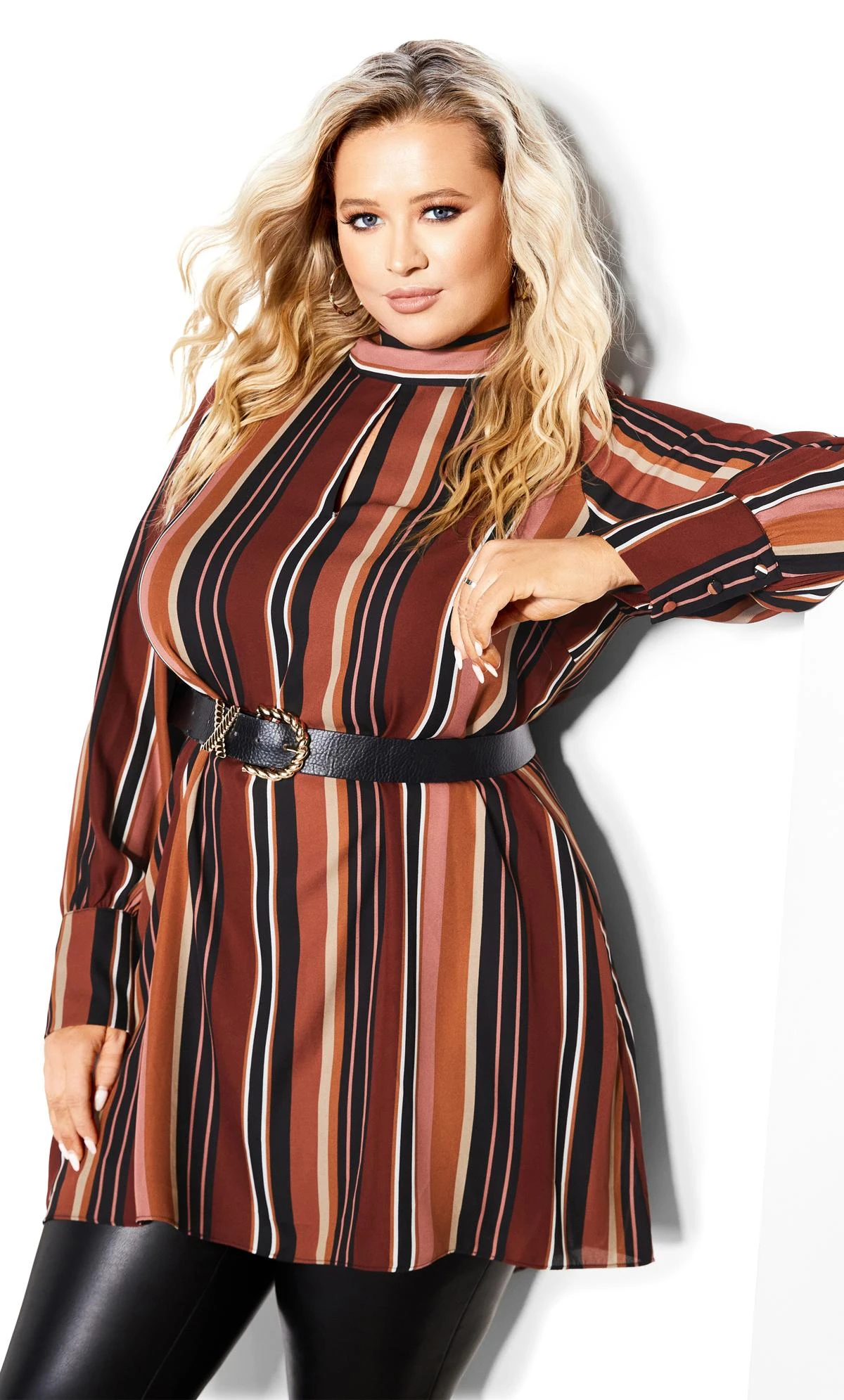 – Below hip length hemline