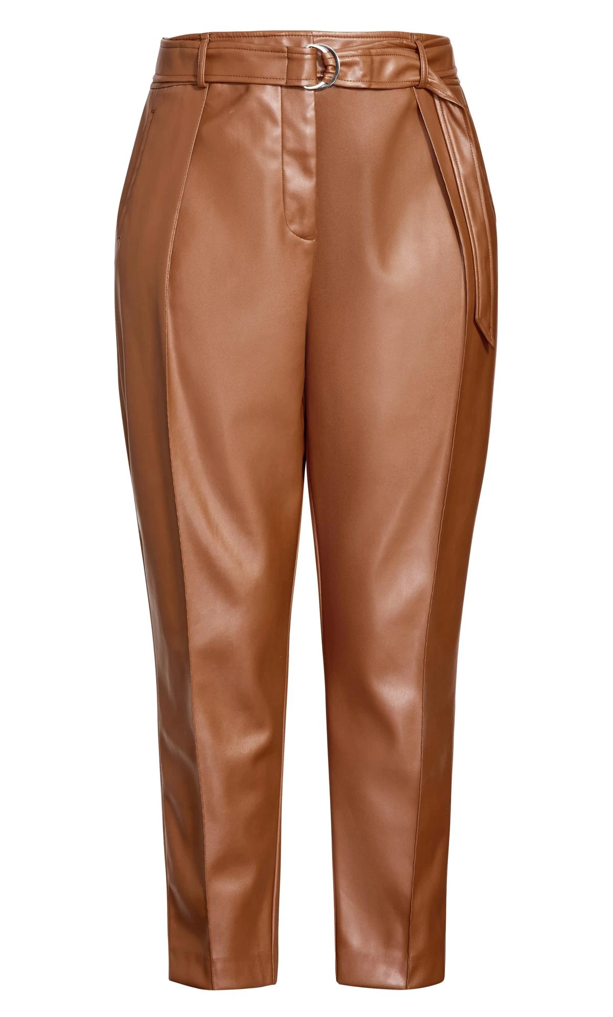 Unveil sophistication with a touch of edge in the City Chic Brown Faux Leather Belted Straight Leg Trousers. These trousers seamlessly blend style and comfort, featuring a straight leg cut and a sleek faux leather finish. The included belt adds a trendy accent, making these trousers a versatile addition to your wardrobe for both daytime chic and evening allure.