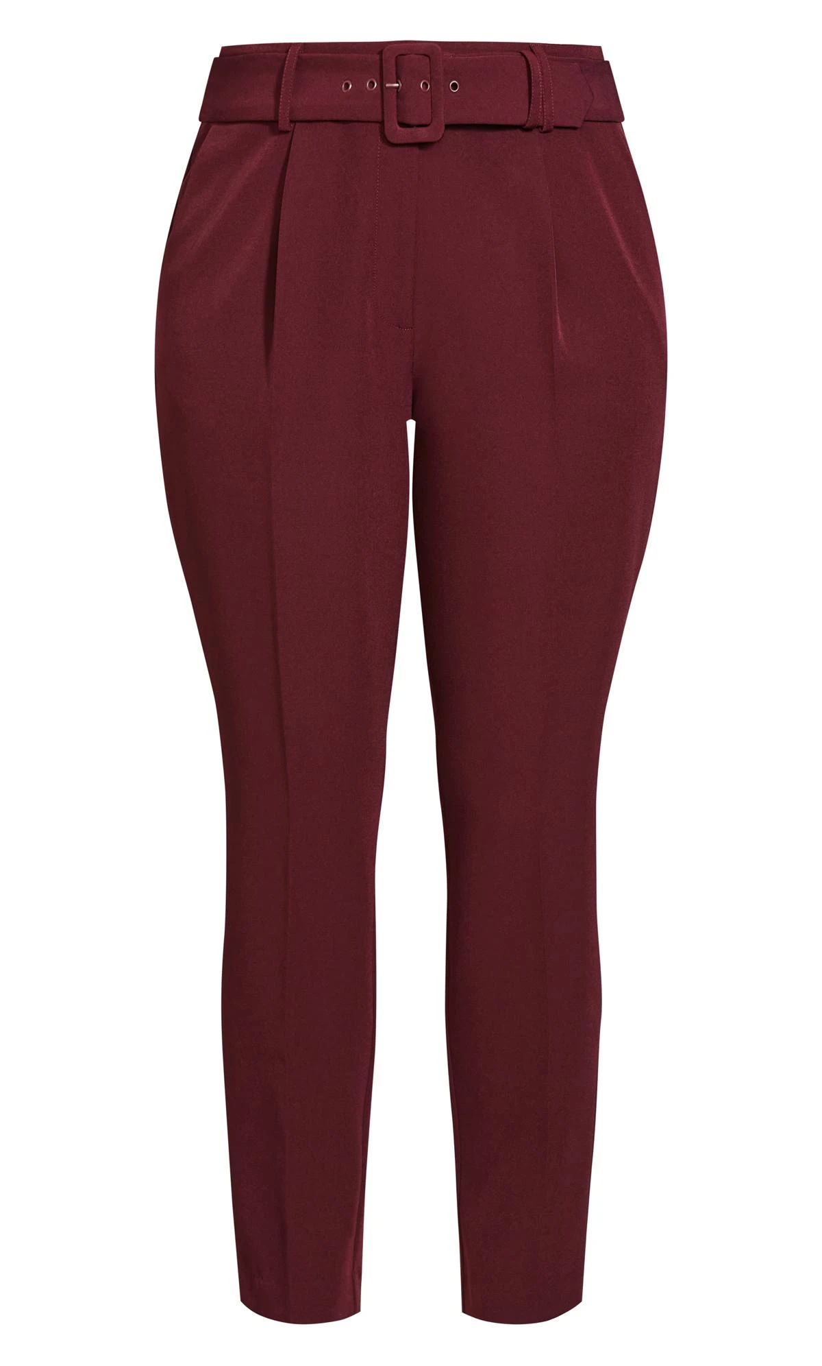 City Chic Burgandy Red Belted Straight Leg Trousers