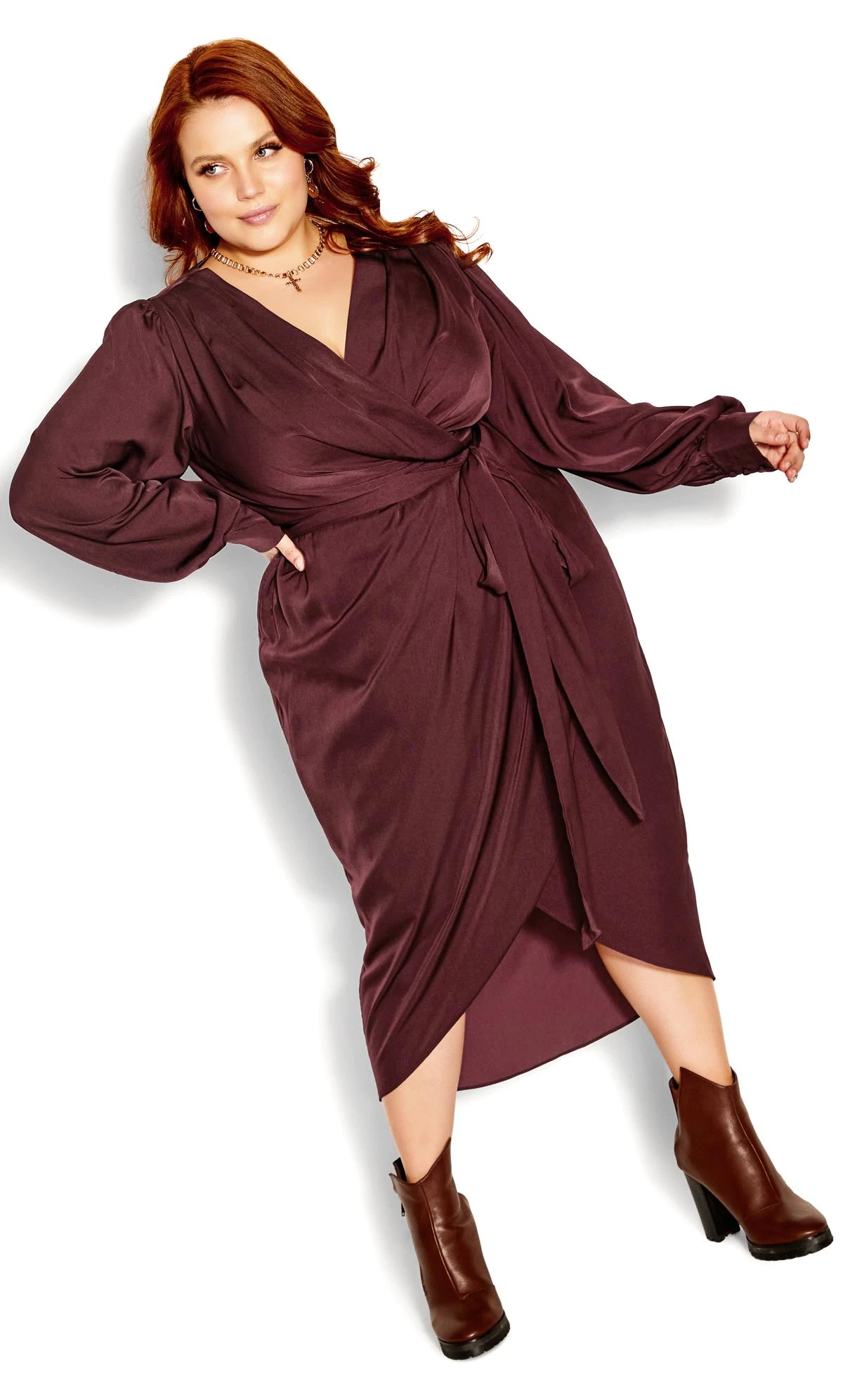 Elevate your charm with the City Chic Pink Satin Tie Waist Wrap Midi Dress. Crafted to perfection, this dress combines sophistication and allure with its wrap-style design and flattering midi length. The luxurious pink satin gracefully drapes, while the tie waist adds a touch of elegance, making this dress a captivating choice for any special occasion.