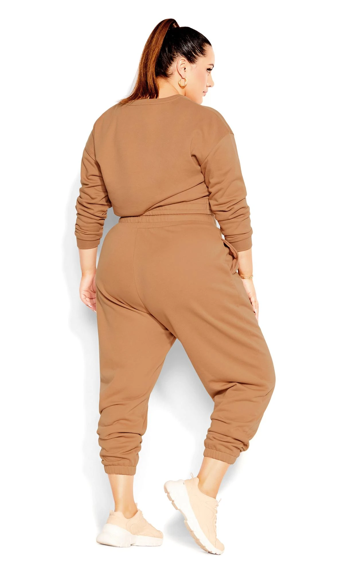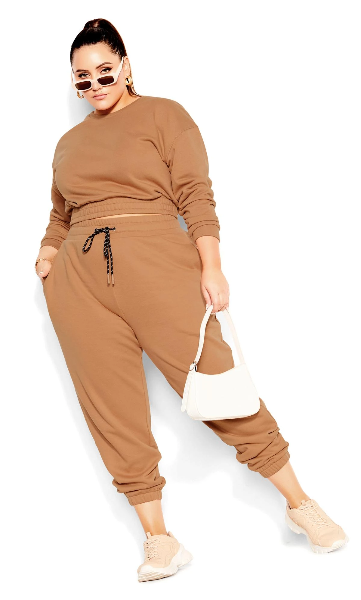 Team with a cropped tee and chunky trainers for fashion-forward style.