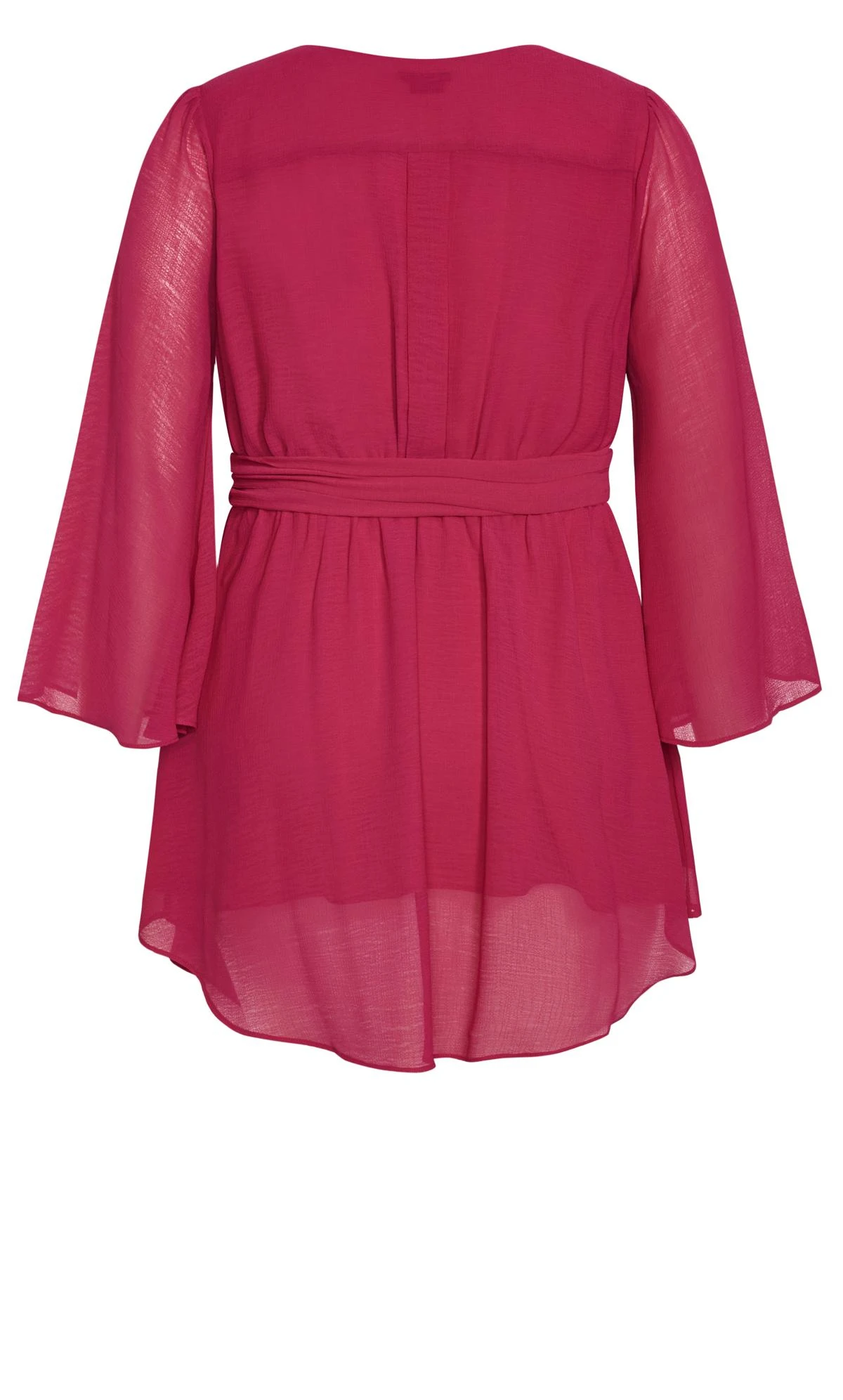 The City Chic Dark Pink Longline Chiffon Wrap Top is a sumptuous blend of depth and delicate design. This captivating top, dipped in a rich dark pink hue, is crafted from airy chiffon, creating an ethereal drape. The wrap detail elongates the silhouette while offering a touch of sophistication, making it a standout choice for both daytime allure and evening elegance.