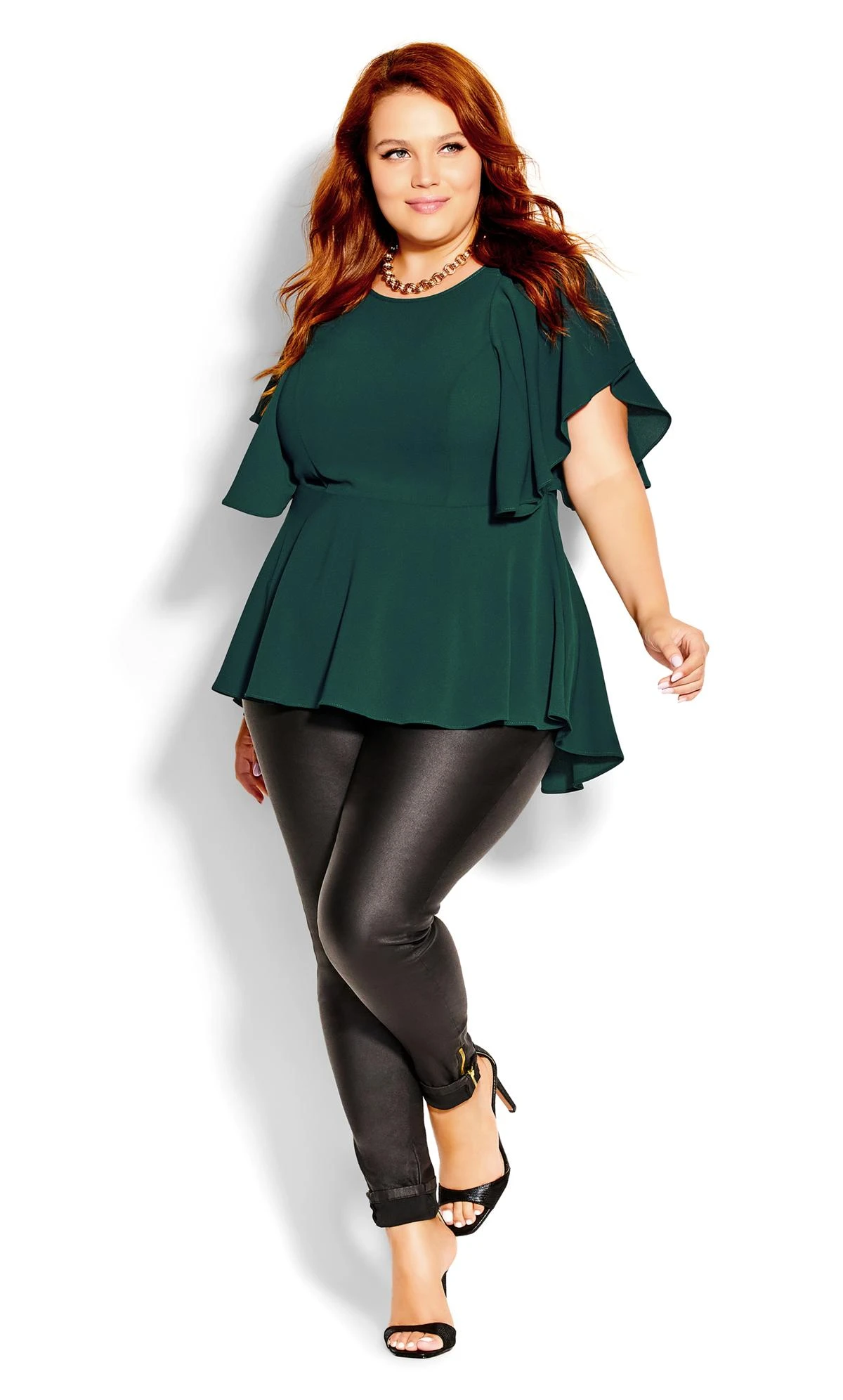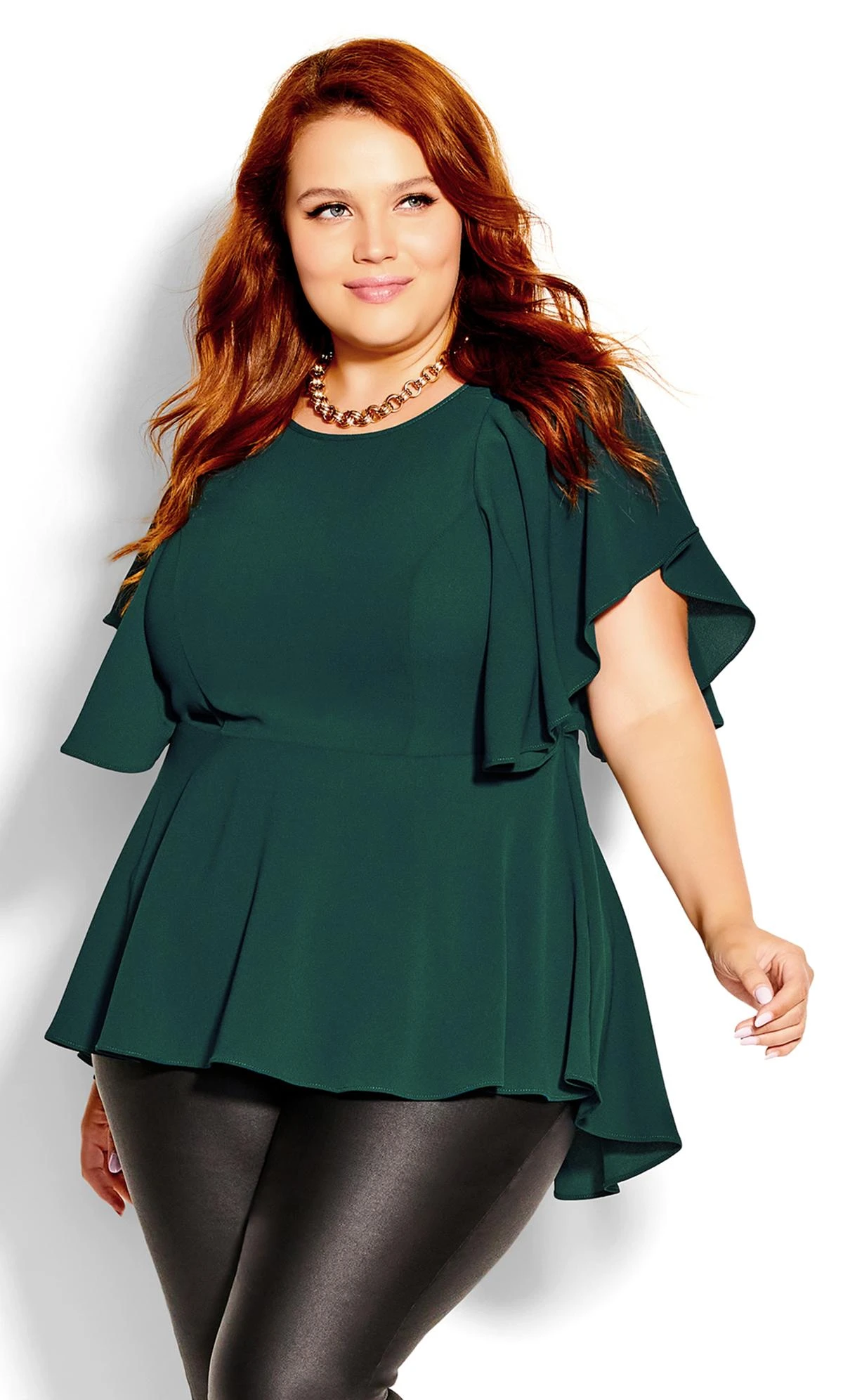 Elevate your wardrobe with the City Chic Forest Green Peplum Oversized Frill Top. Combining trendy forest green with a flirty peplum and oversized frill detailing, this top redefines style. Whether paired with jeans or a skirt, make a bold fashion statement that captures attention and showcases your unique flair.