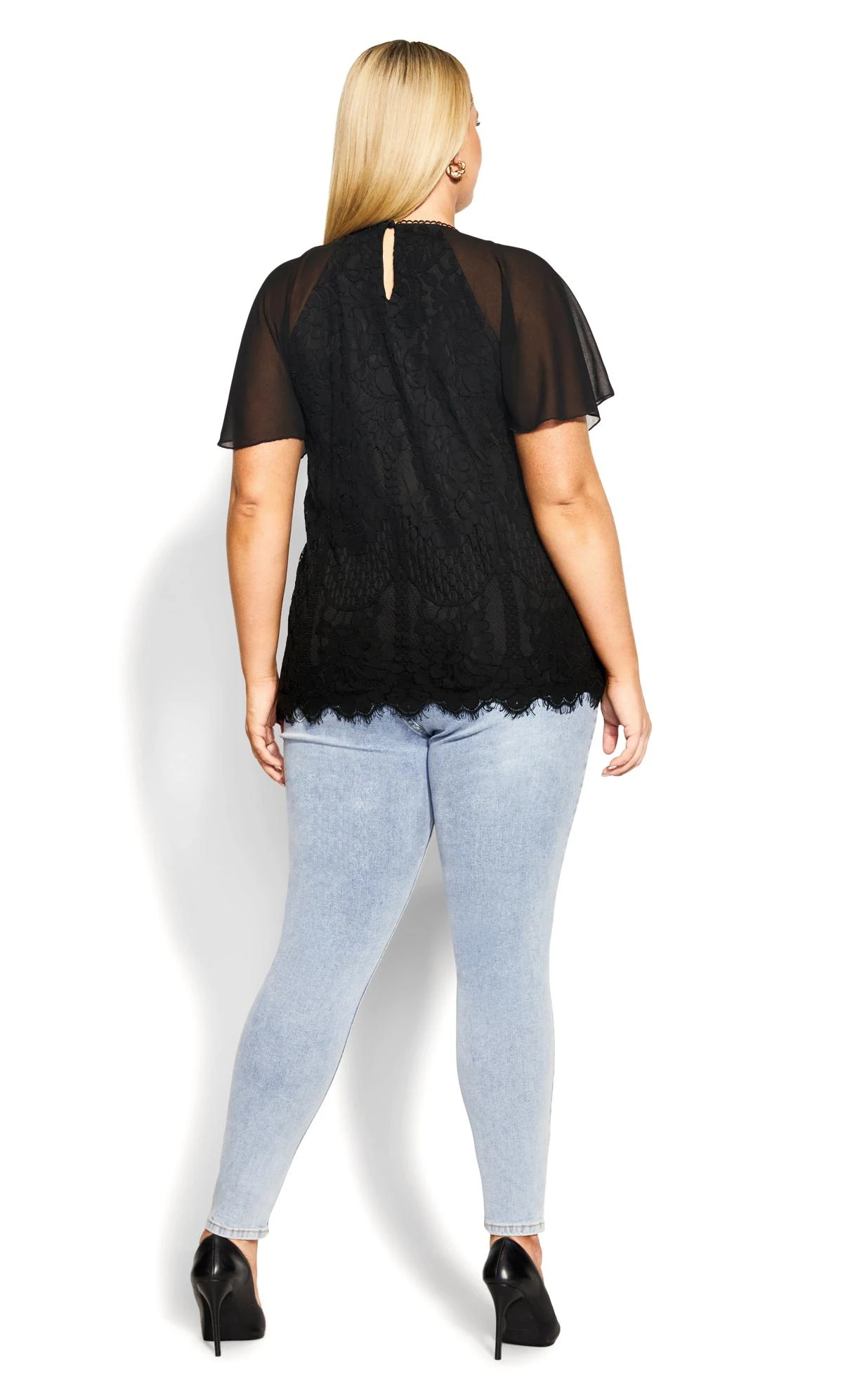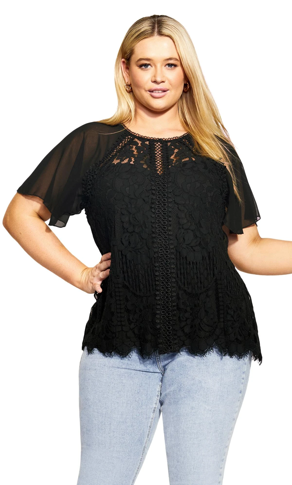 Radiate elegance with the City Chic Lace Chiffon Sleeve Top. The delicate lace and flowing chiffon sleeves create a romantic look. Versatile for both casual and dressed-up occasions, this top adds a touch of feminine charm to your ensemble, ensuring you stand out with grace and style.