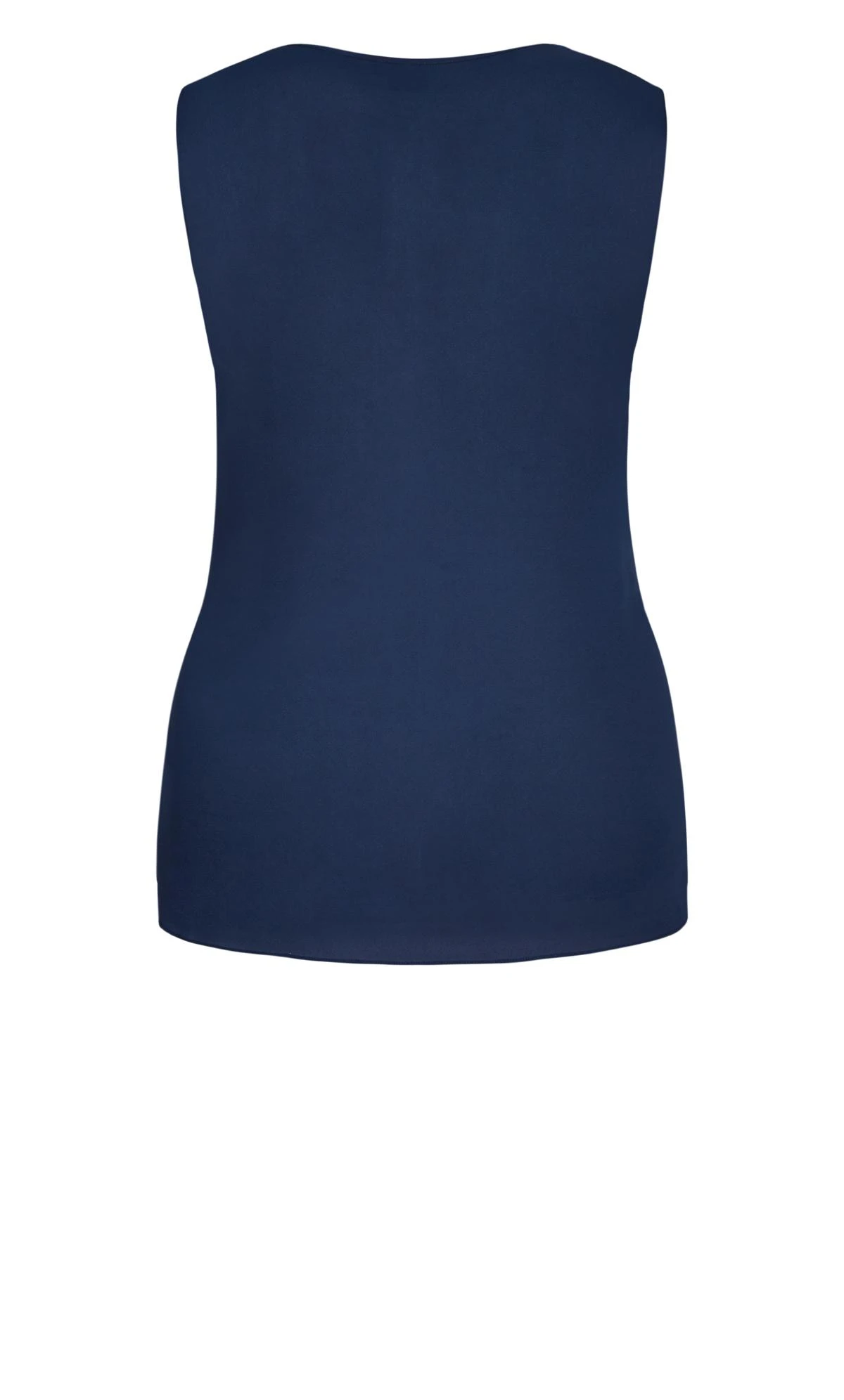 Elevate your wardrobe with the City Chic Navy Blue Zip Front Vest Top. This top combines modern style and versatility with its zip front design and classic navy blue hue. Pair it with jeans or shorts for a casual and chic look that’s perfect for various occasions, allowing the zip detail to add a touch of contemporary flair to your ensemble.