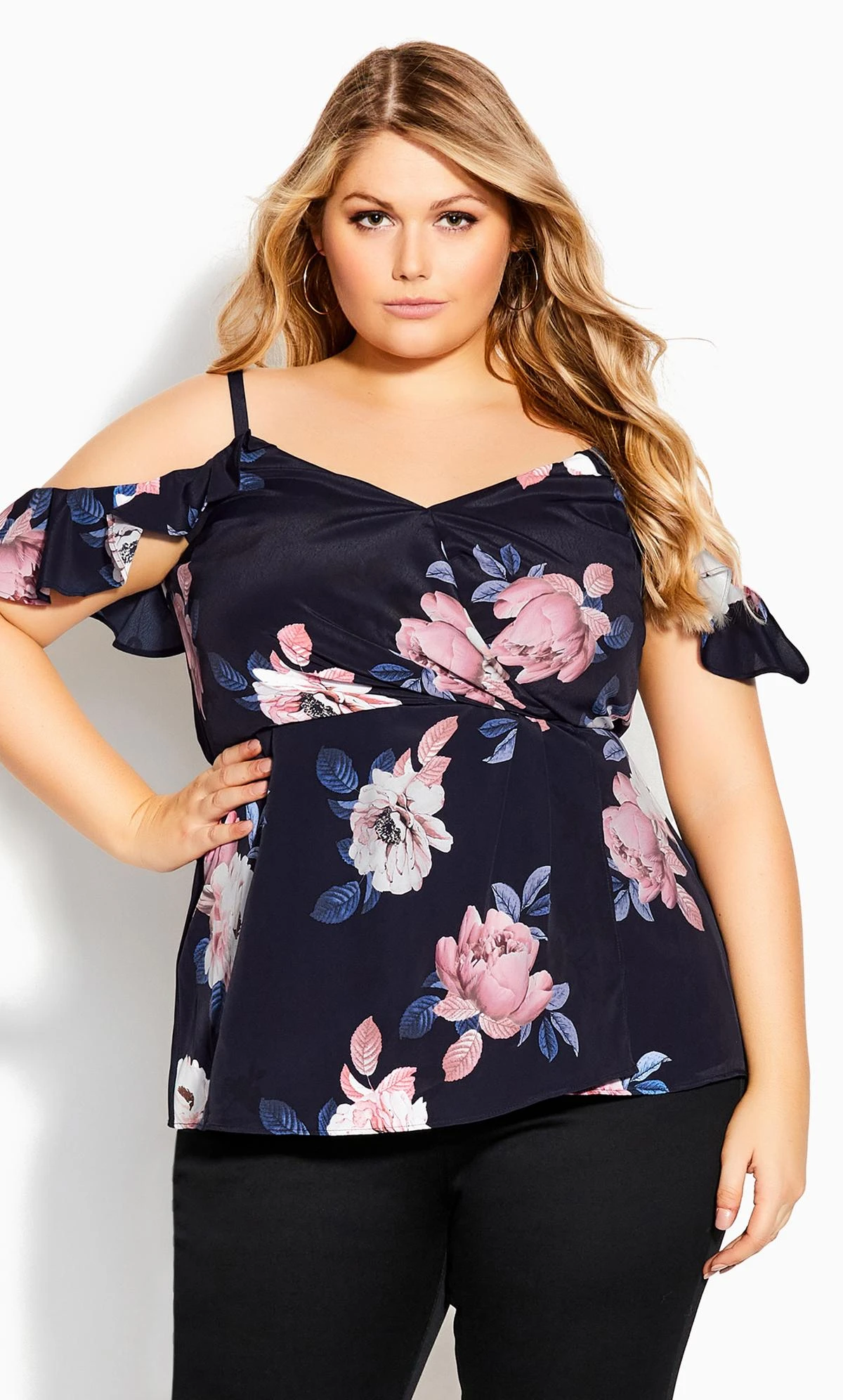 Unveil your impeccable style with City Chic’s navy floral Bardot top, a harmonious blend of sophistication and trendiness. The Bardot silhouette showcases your shoulders while the navy floral print adds a touch of elegance to your ensemble. Elevate your wardrobe with this must-have navy floral Bardot top from City Chic and make heads turn with every step.