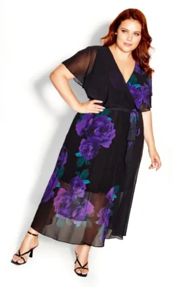 Experience enchanting beauty with the City Chic Purple Floral Print Chiffon Midi Wrap Dress. Adorned with a captivating floral pattern and a flattering midi length, this dress exudes sophistication for any occasion. Elevate your ensemble by pairing it with strappy heels and delicate accessories, allowing the vibrant purple hues and delicate chiffon to create a mesmerizing look that’s perfect for romantic evenings or special events.