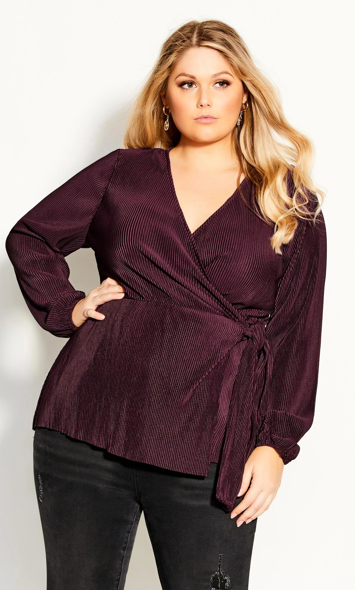Elevate your wardrobe with the City Chic Black Plisse Wrap Top, a timeless blend of sophistication and versatility. Crafted with meticulous attention to detail, the plisse fabric adds texture and movement to this classic black piece. Whether paired with tailored pants for a professional look or dressed down with jeans for a casual outing, this wrap top effortlessly brings elegance to any ensemble.