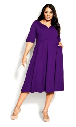 Step into a world of elegance with the City Chic Purple Skater Midi Dress. Radiating a regal aura in its deep purple hue, this dress showcases a flattering skater silhouette that dances with every movement. Perfect for both daytime events and evening soirées, its timeless design ensures you’re always dressed in sophisticated charm.