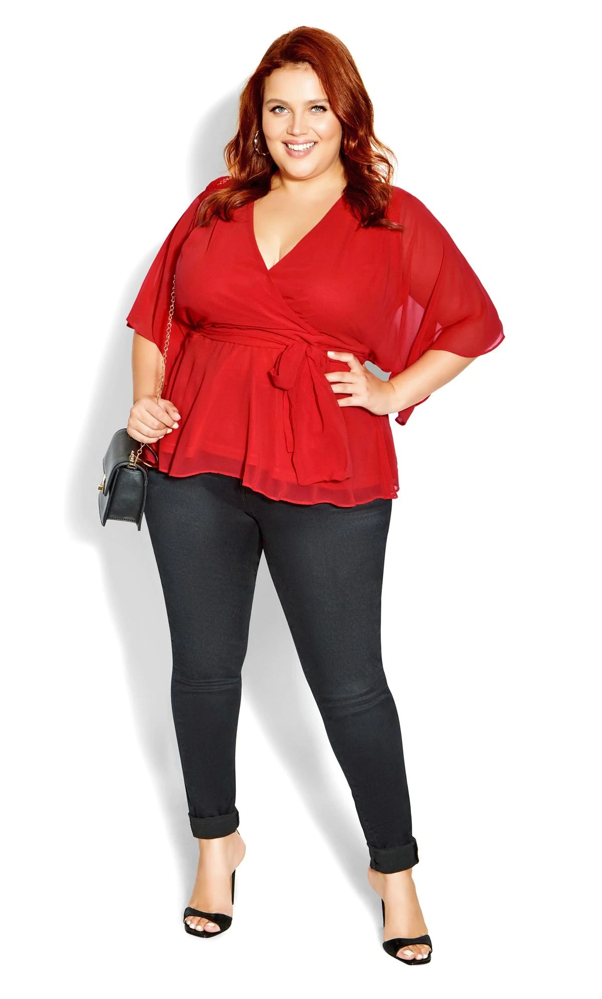 Style with wide leg slacks and simple stilettos for a smart casual look.