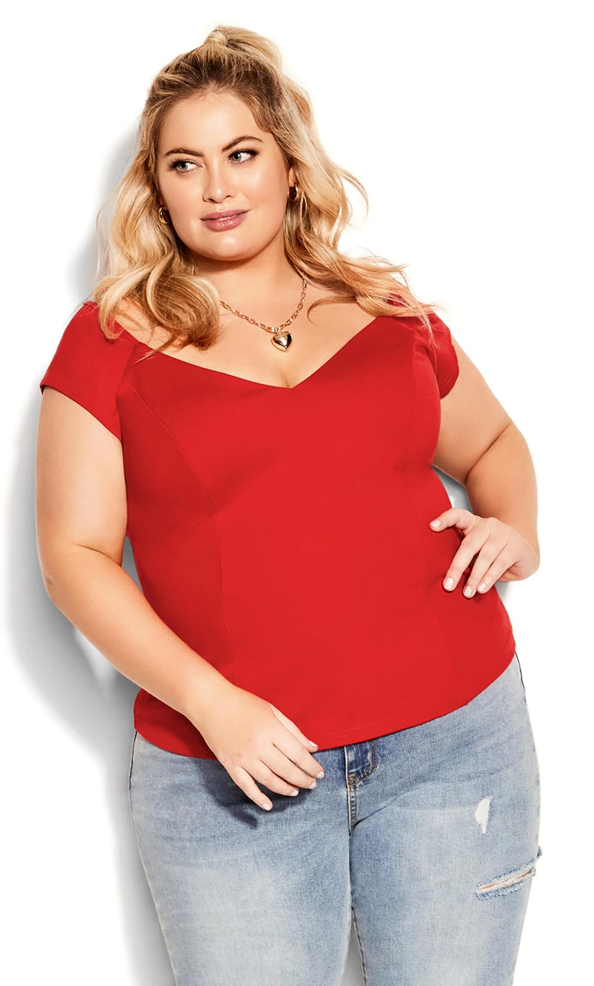 – Wide V-neckline