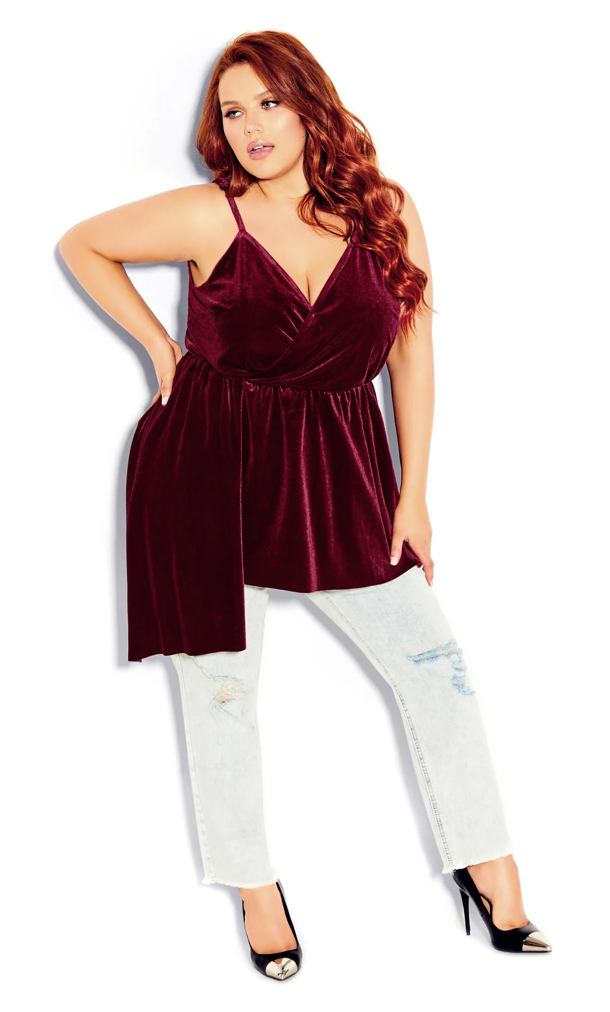 Capture opulent allure with the City Chic Red Velvet Sash Wrap Top. This striking top features sumptuous red velvet fabric and a flattering wrap design accented with a sash, blending luxury with style. Perfect for festive occasions or elegant evenings, pair it with tailored pants or a skirt and heels to create a captivating and sophisticated ensemble that radiates confidence and glamour.