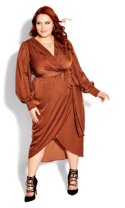 Radiate confidence and allure in the City Chic Rust Orange Satin Midi Wrap Dress. This dress effortlessly combines luxurious comfort with captivating style, featuring a rich rust orange hue in sumptuous satin fabric that drapes beautifully. The timeless midi length and flattering wrap design create a stunning silhouette, making it a versatile choice for occasions that demand both sophistication and a touch of glamor.