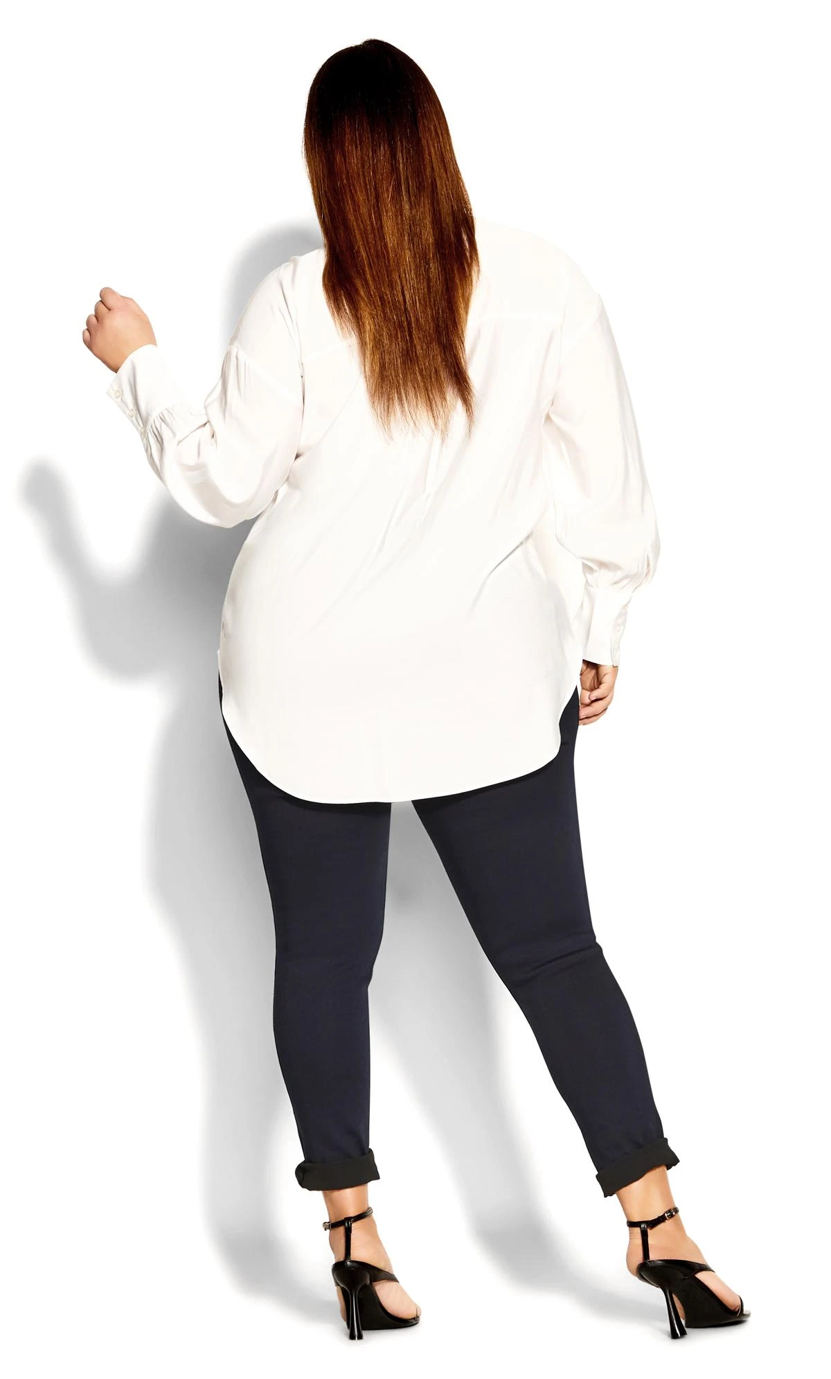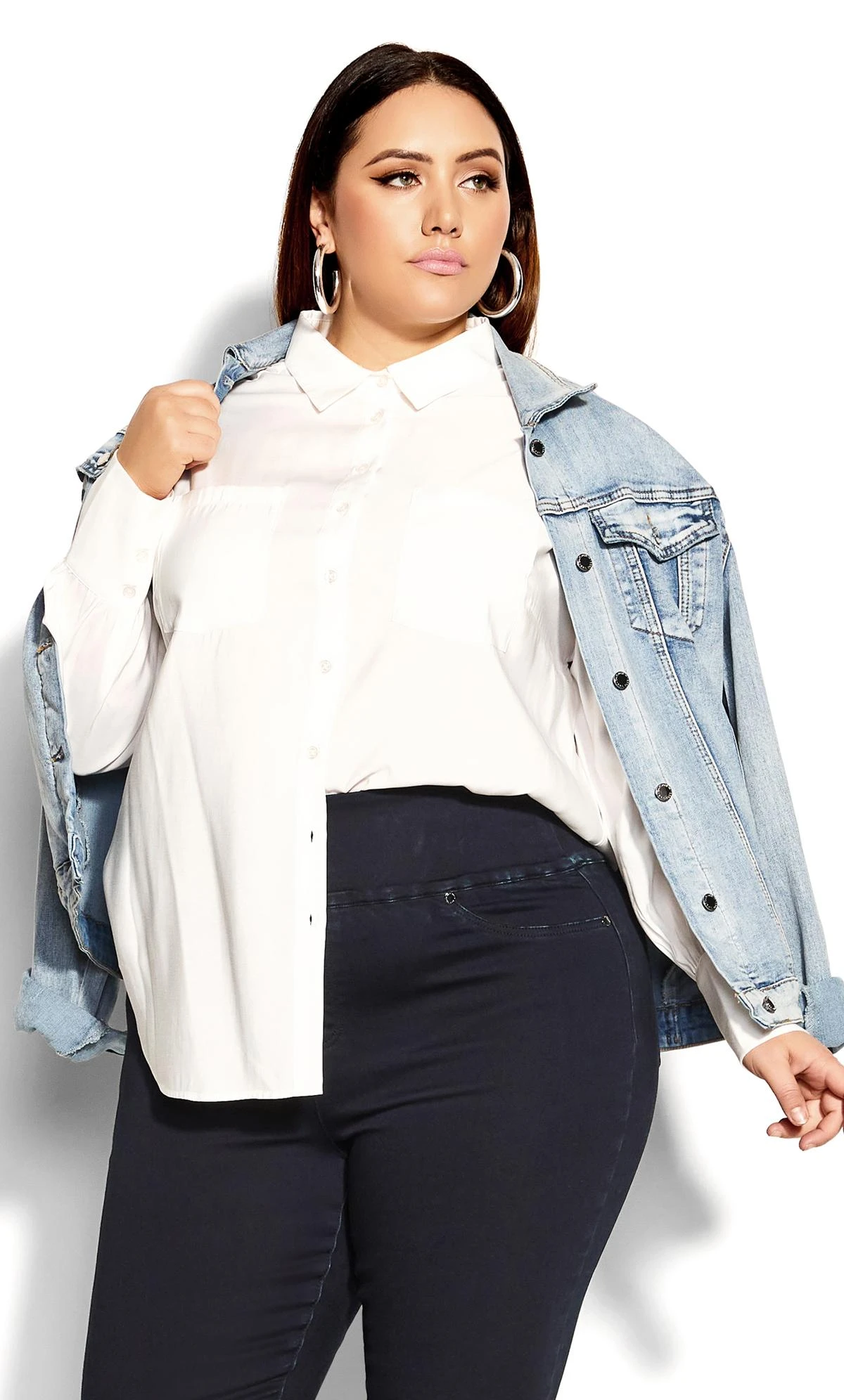 Discover timeless elegance with the City Chic White Button Through Shirt. This classic piece boasts a crisp white hue with a sleek button-through design, ensuring versatility and sophistication. Pair it with tailored trousers for the office or denim jeans for a casual yet refined look on weekends.