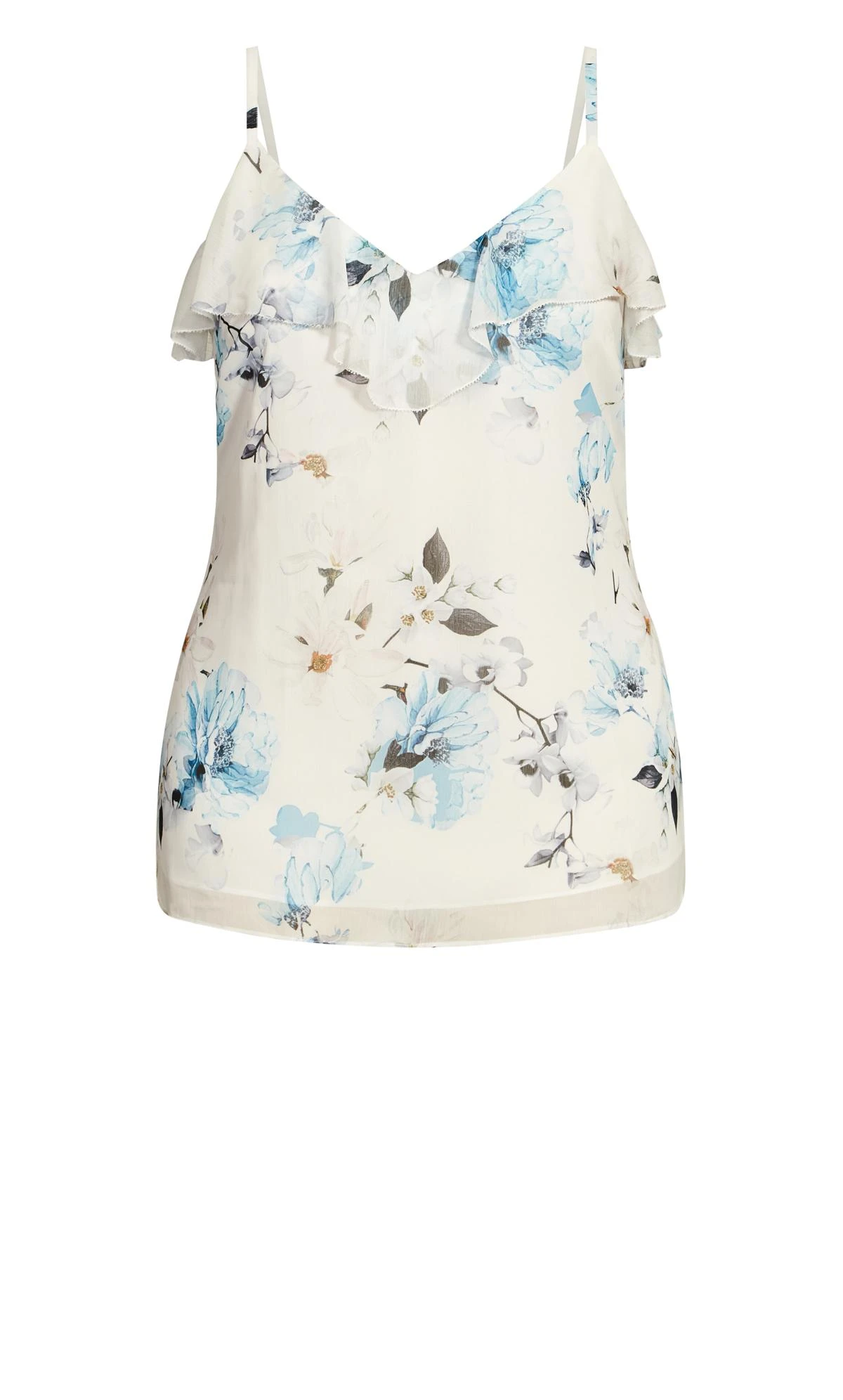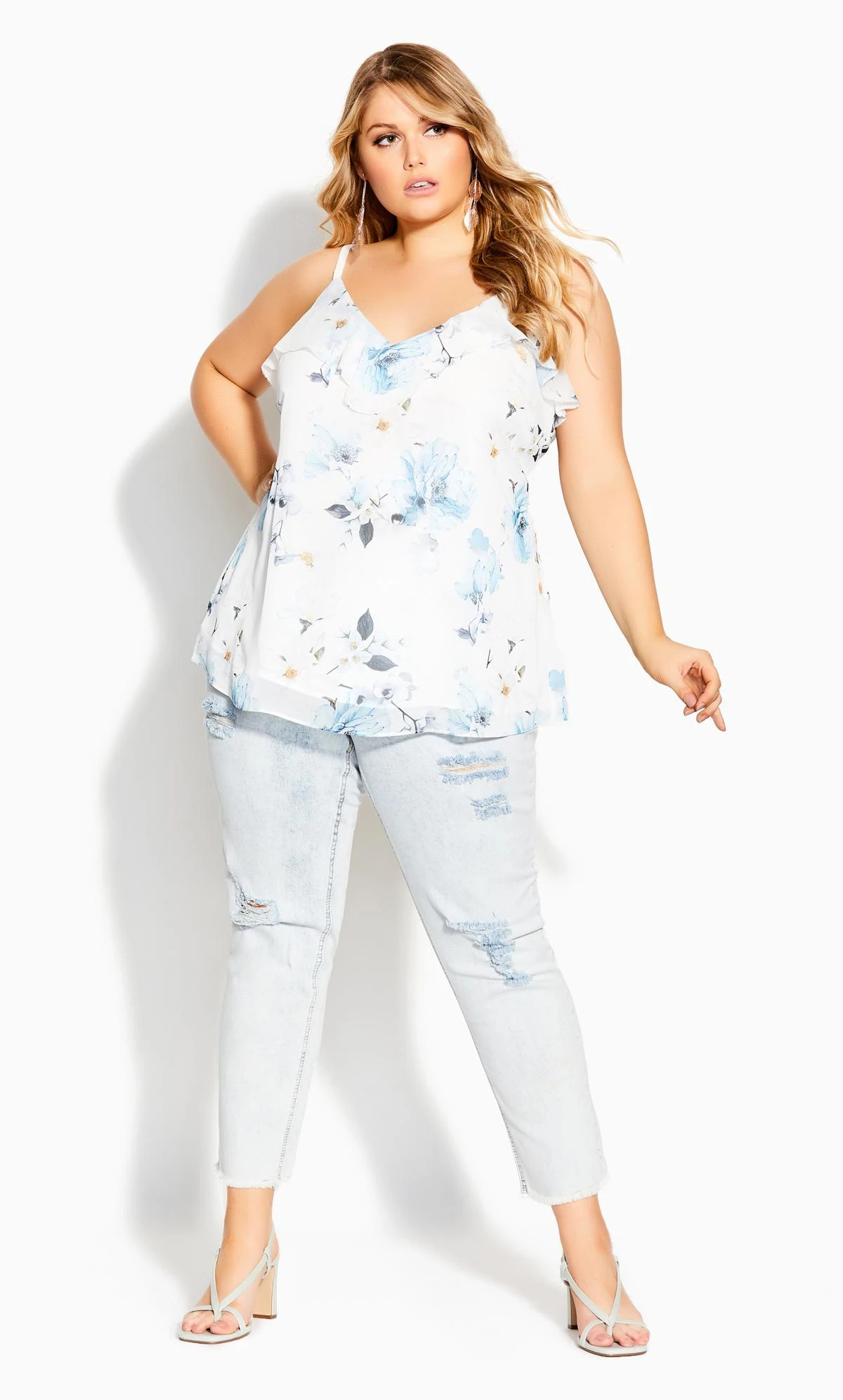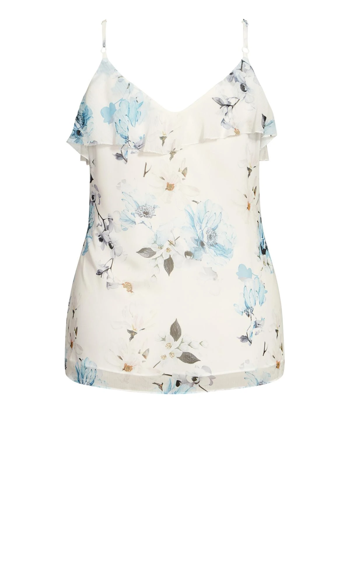 Elevate your summer style with the City Chic White Floral Frill Cami Top. The delicate floral pattern and charming frill detail combine for a fresh and feminine look. Whether paired with jeans for a casual outing or dressed up for a special occasion, this cami top effortlessly adds a touch of elegance to your ensemble.