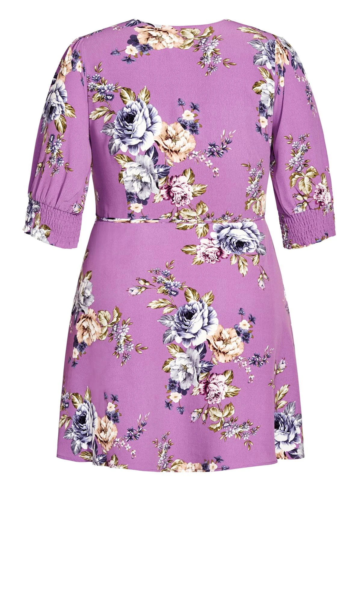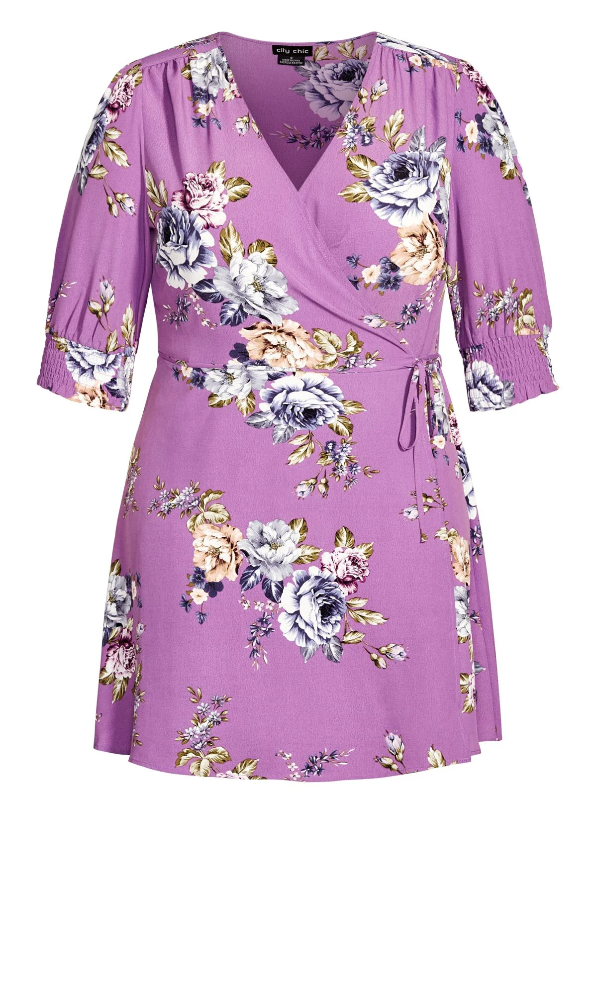 Flaunt your feminine flair with this City Chic White Floral Print Wrap Dress. This gorgeous dress features a wrap design that cinches your waist and creates a flattering silhouette. The v-neckline, short sleeves, and ruffled hem add some charm and romance to your look.