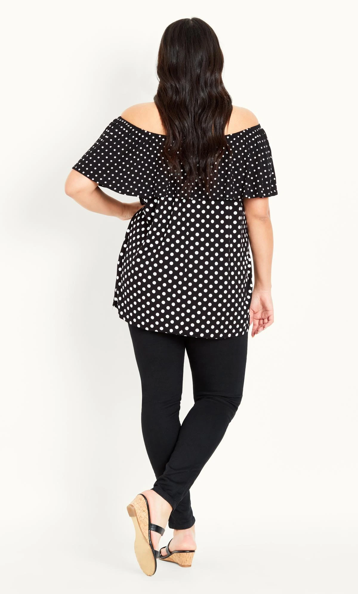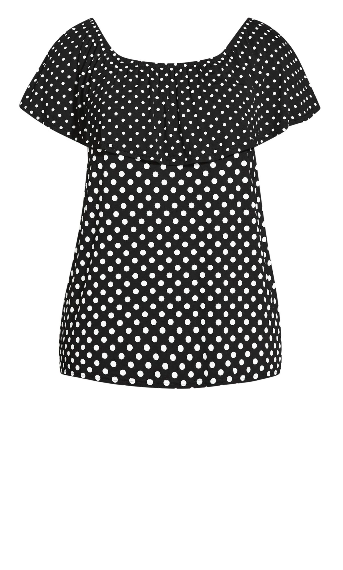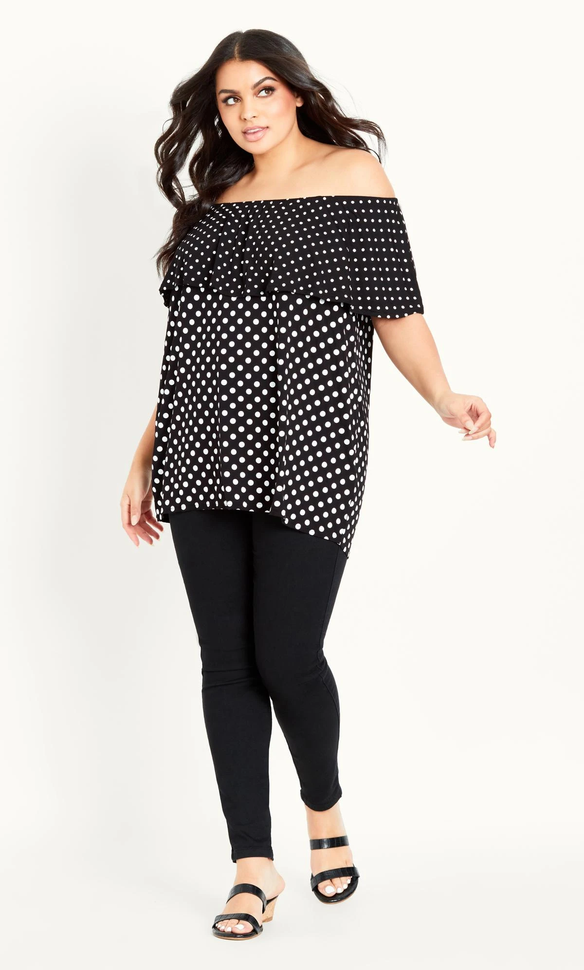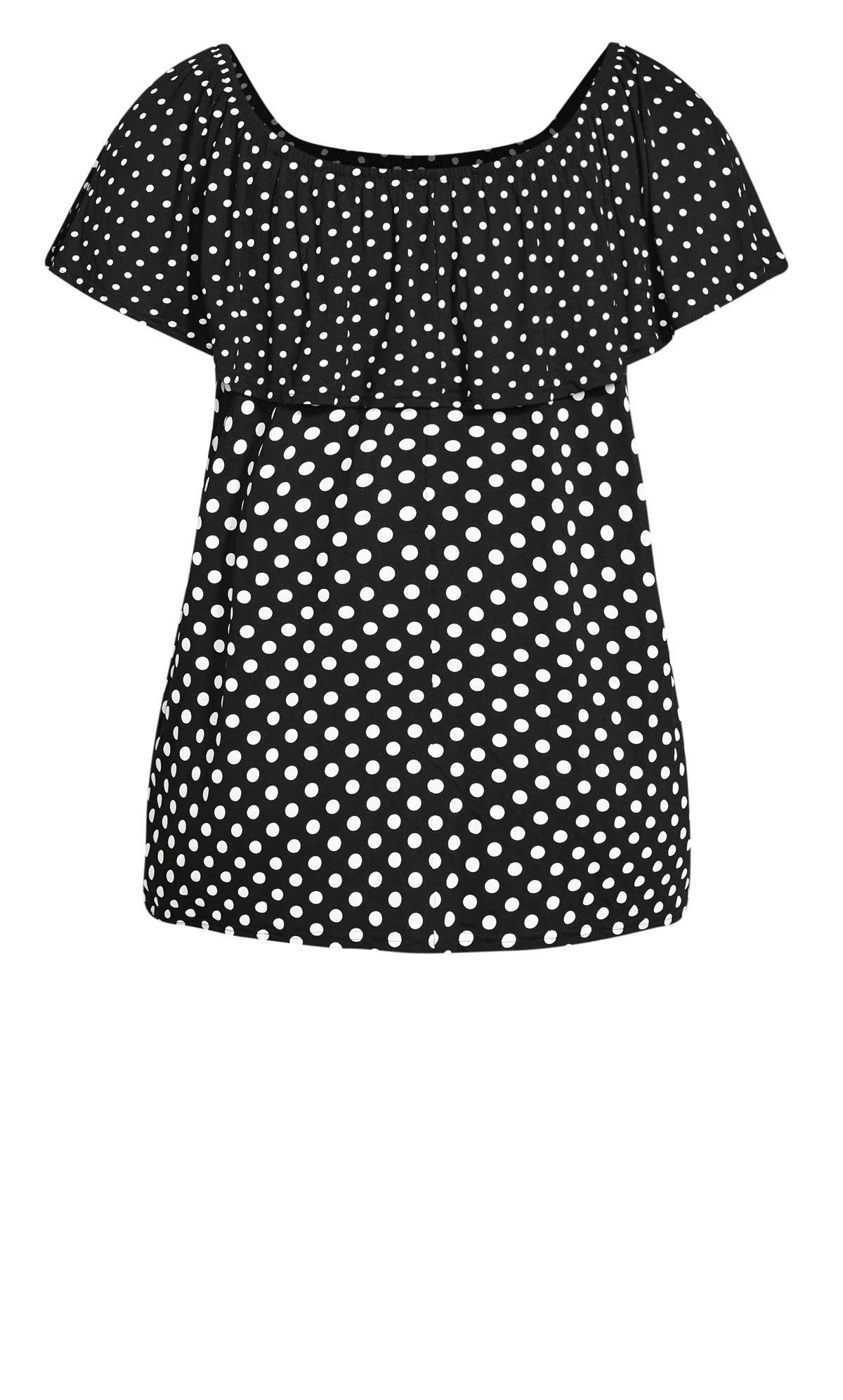 Revitalize your look with the Evans Black Spotted Top, a versatile and elegant addition to your collection. Boasting a timeless black base adorned with delicate white spots, this top seamlessly blends classic and contemporary aesthetics. Its relaxed fit and comfortable fabric ensure all-day wearability, while the subtle yet eye-catching pattern adds a touch of intrigue to your outfit, making it a wardrobe essential for various occasions.