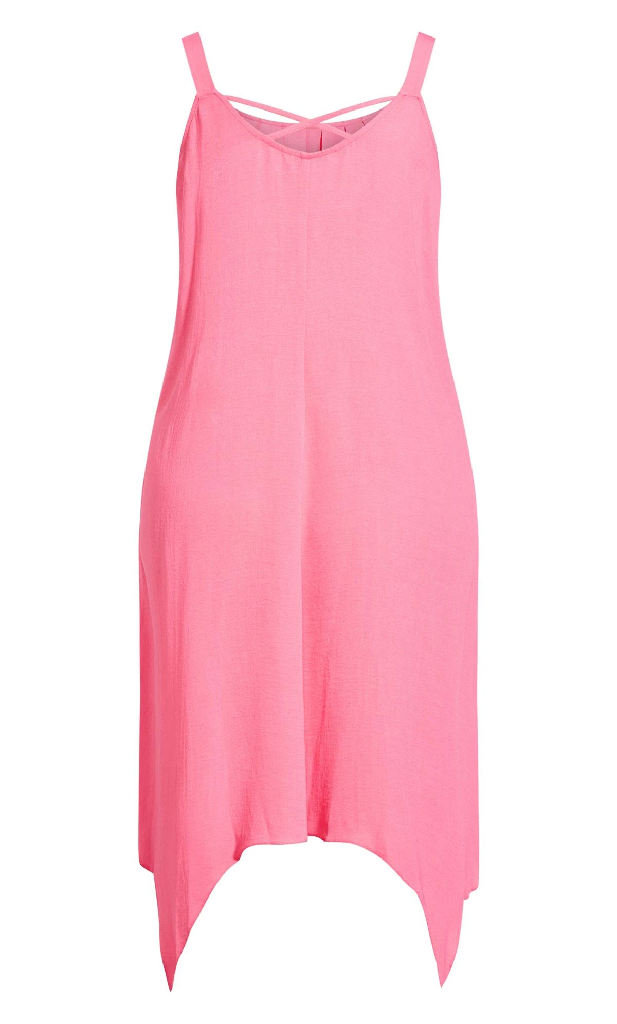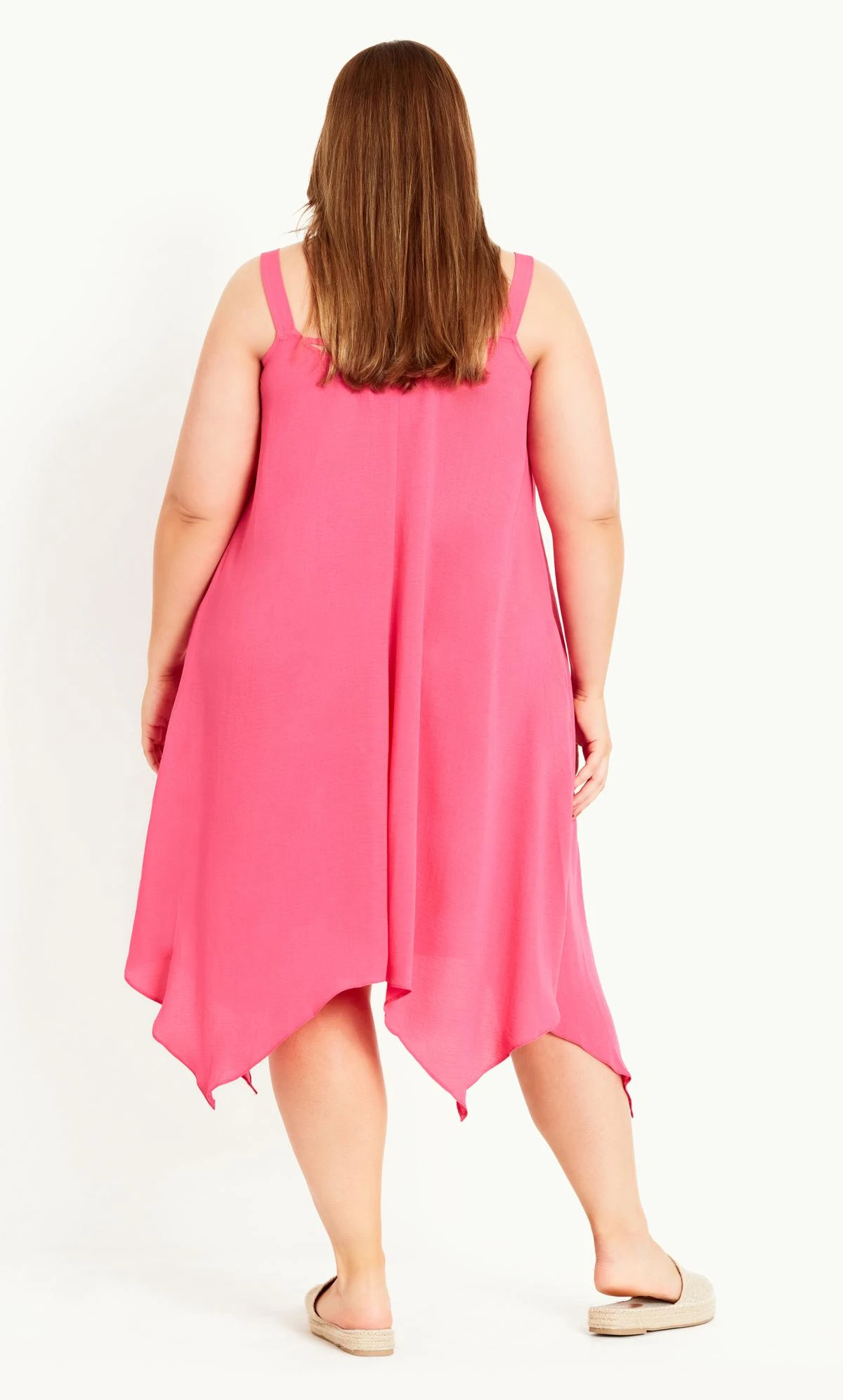 Make a bold statement with the Evans Hot Pink Hanky Hem Midi Dress. The vibrant hot pink color and hanky hem detail create a playful and eye-catching look. Versatile for various occasions, it effortlessly combines style and flair. Redefine your wardrobe with this statement midi dress that captures both confidence and fashion-forward sensibility.