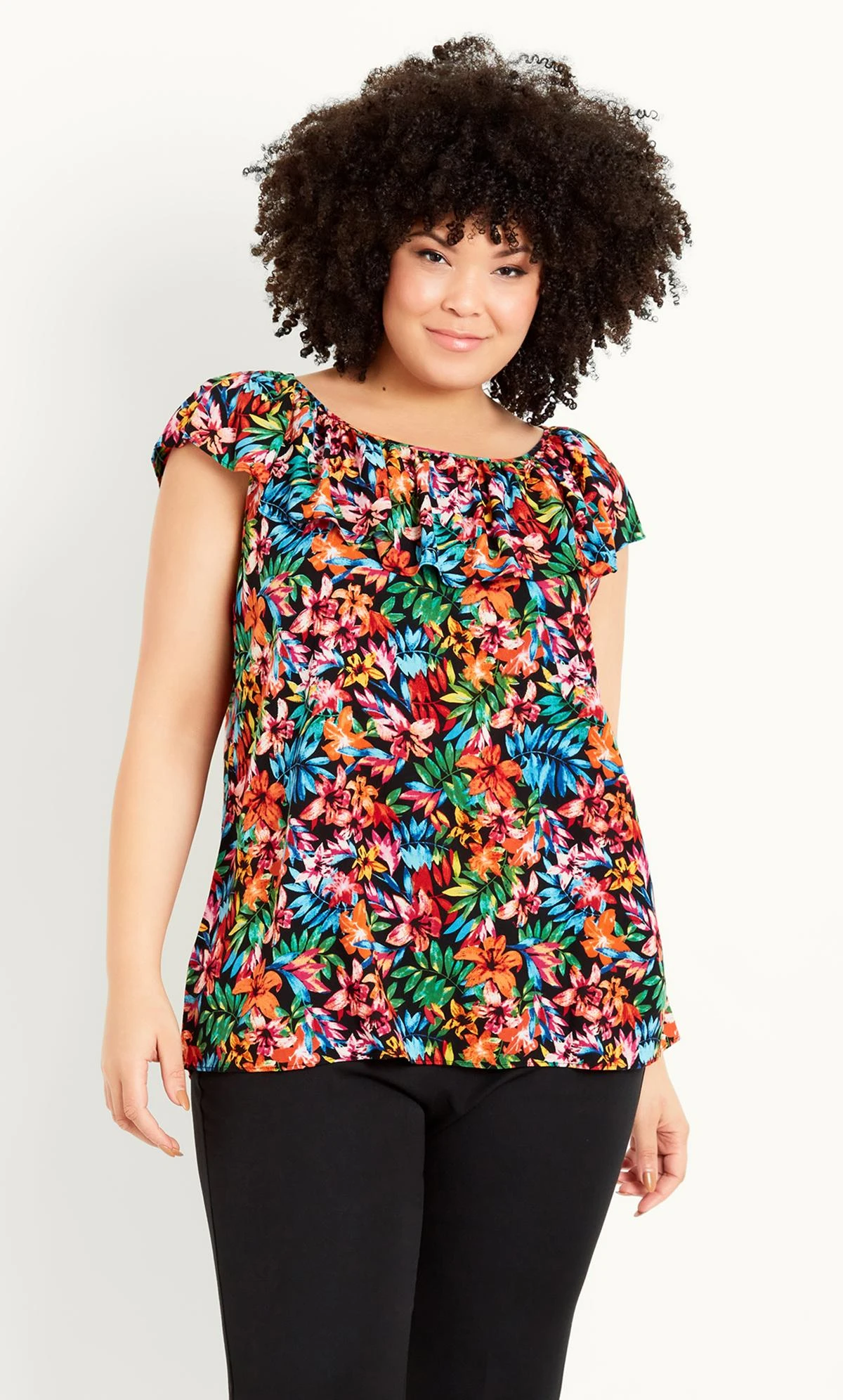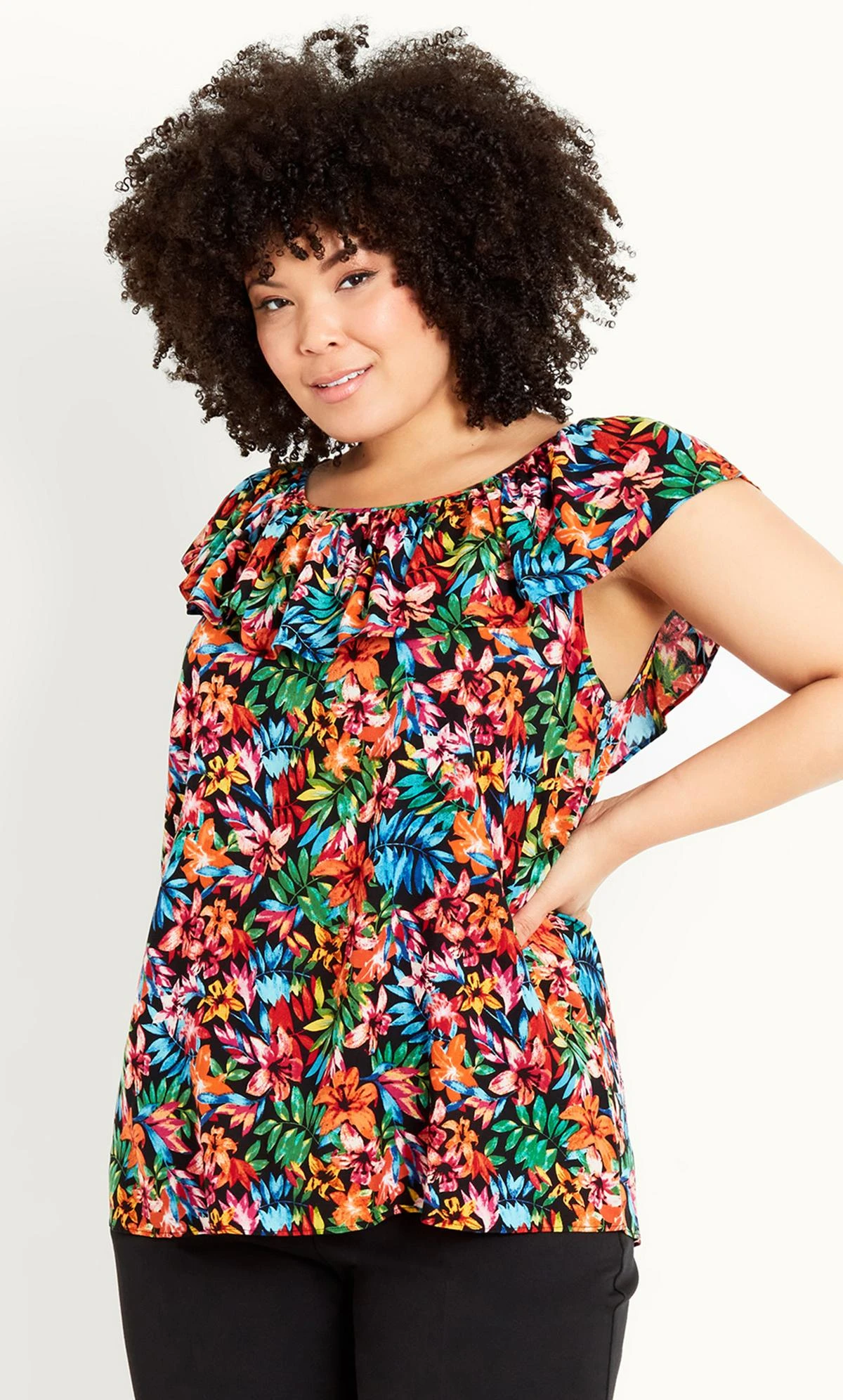 – Round frilled neckline