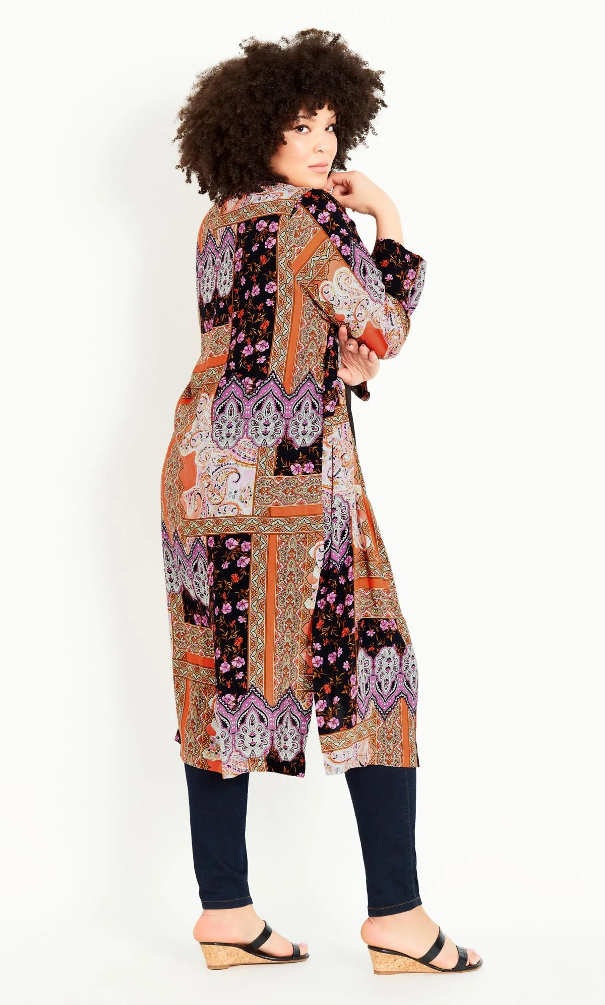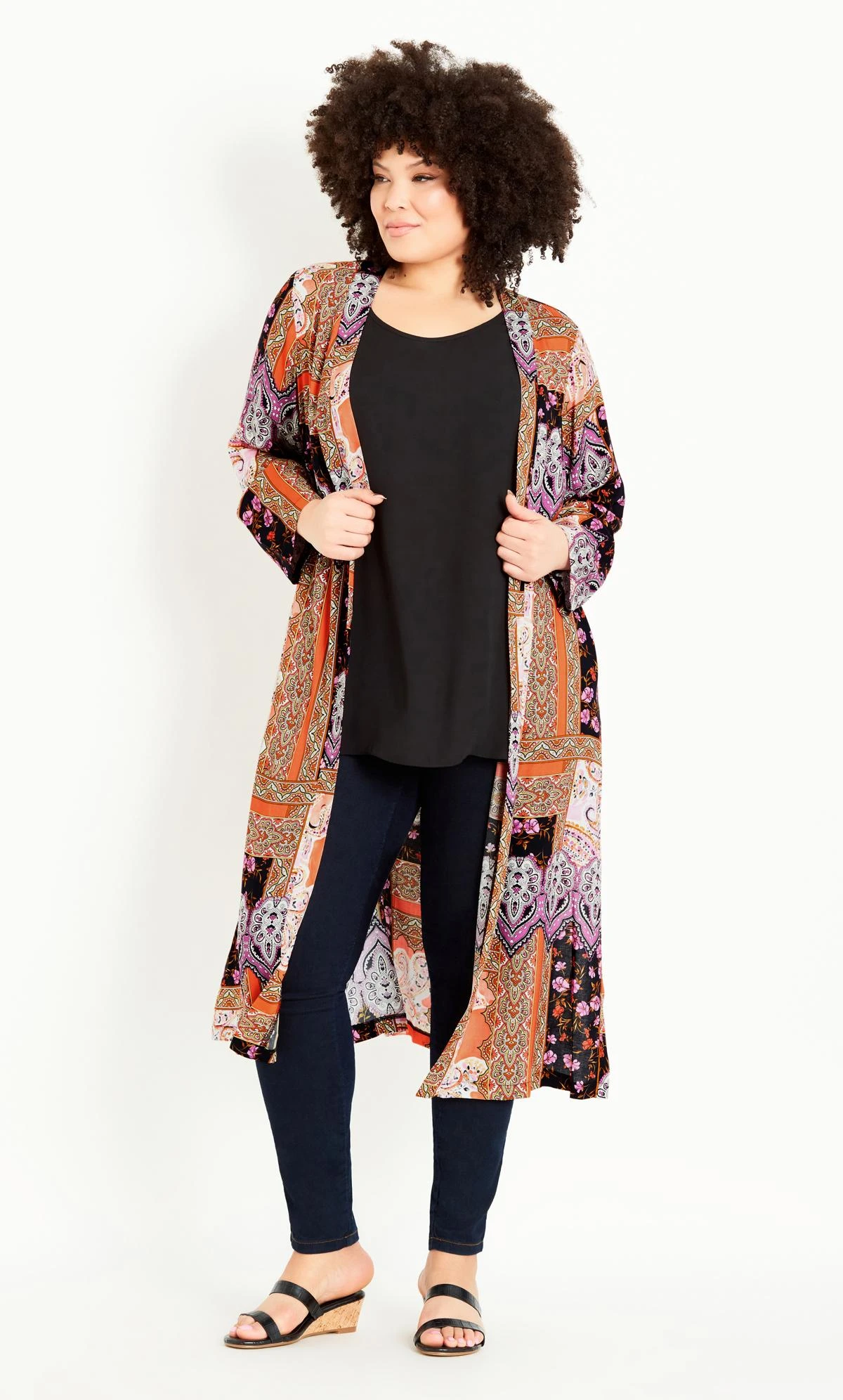 Pair this kimono with a cami, mini shorts and chunky sandals, finishing with a tan-hued cross-body bag.