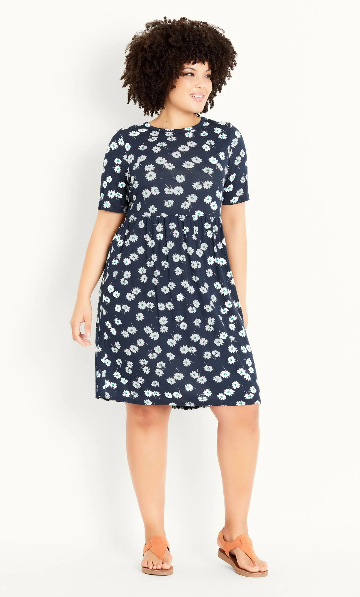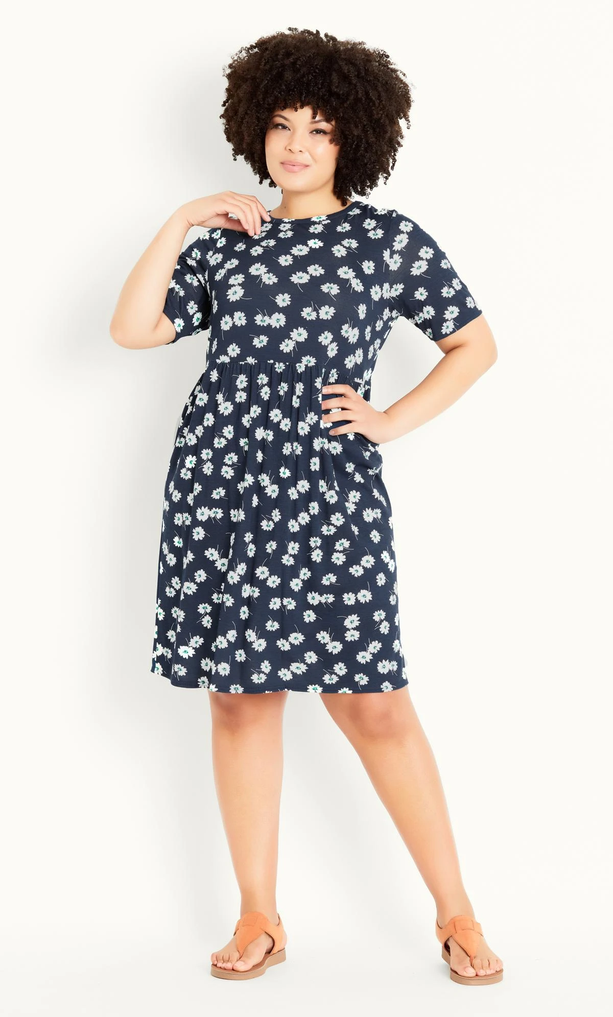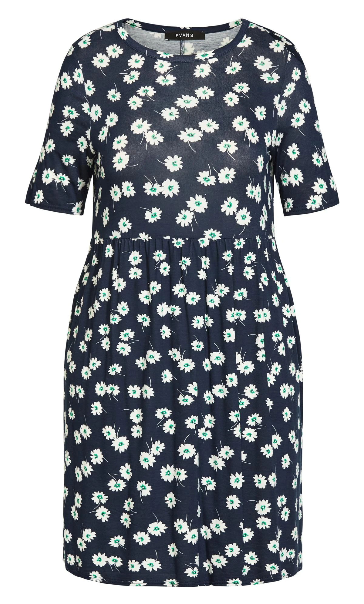 Elevate your feminine charm with the Evans Navy Floral Smock Dress, a versatile addition to your wardrobe. Designed for both style and comfort, this dress showcases a captivating navy hue adorned with delicate floral patterns, adding a touch of elegance to your ensemble. Embrace effortless fashion with this essential smock dress, perfect for both casual outings and dressier occasions.