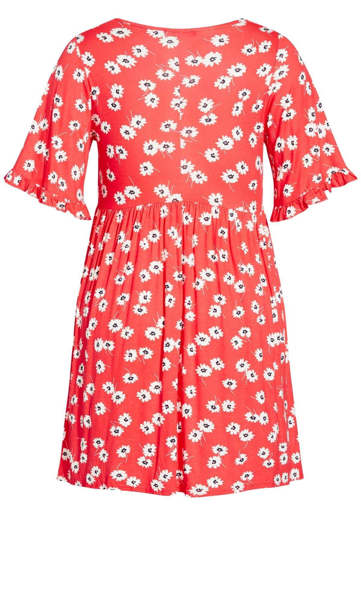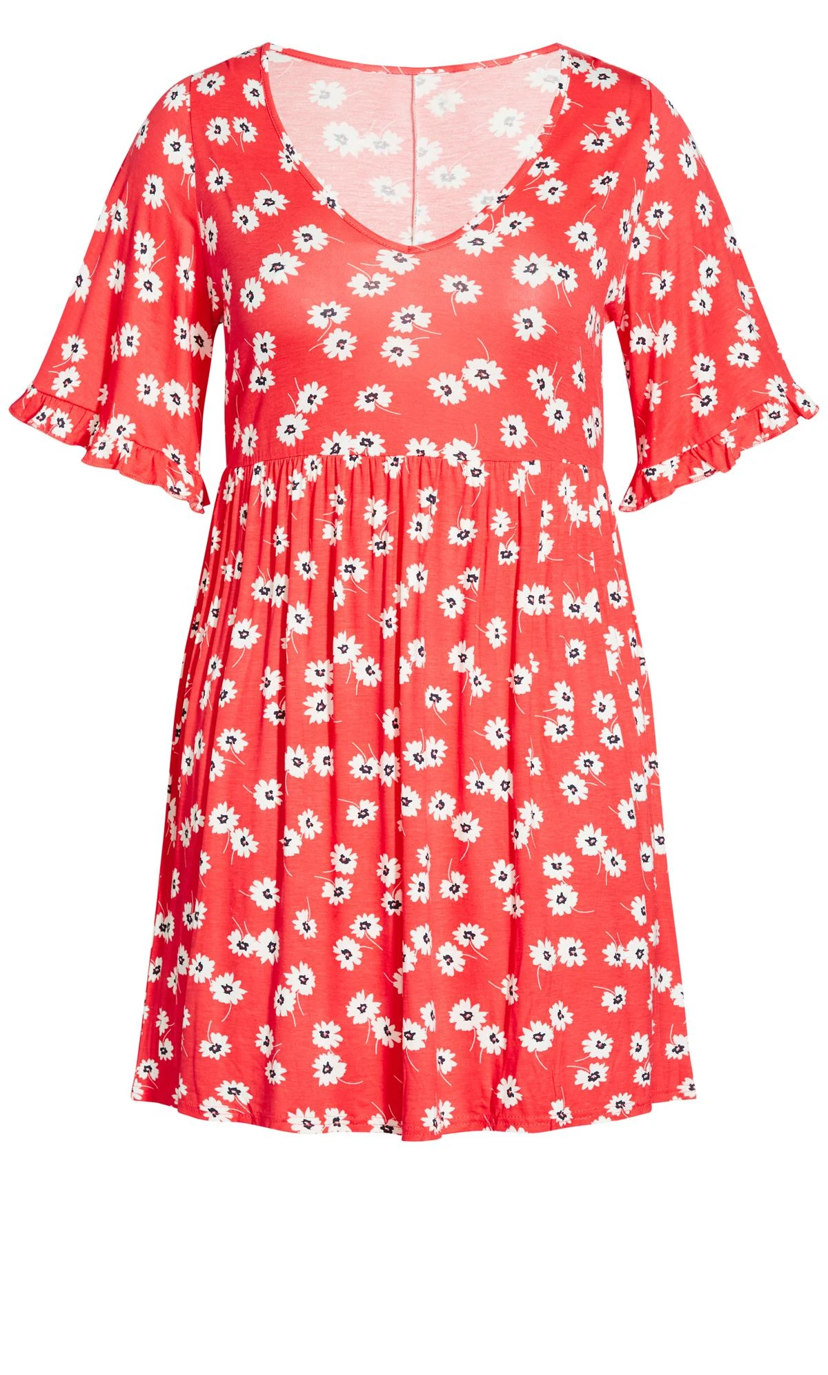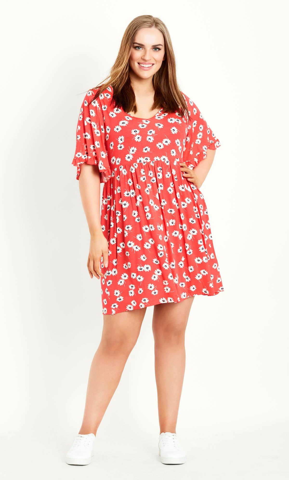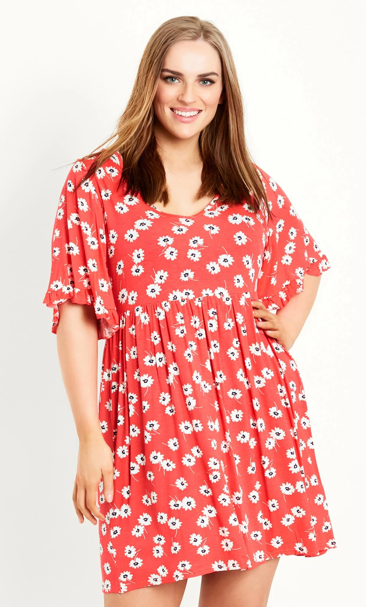 Introducing the Evans Red Floral Print Angel Sleeve Swing Dress, a captivating blend of grace and vibrancy. With its charming angel sleeves and vibrant floral pattern, this dress radiates elegance. Embrace a chic look by pairing it with ballet flats and subtle accessories, making it perfect for daytime outings and soirées alike.